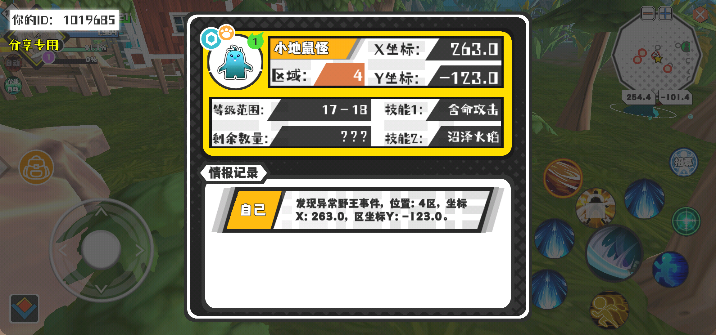 幸运时刻分享! 【野王异常出没】2月27日上午10点 - 小地鼠怪【强度1】 【4区】 【X:263.0, Y:-123.0】