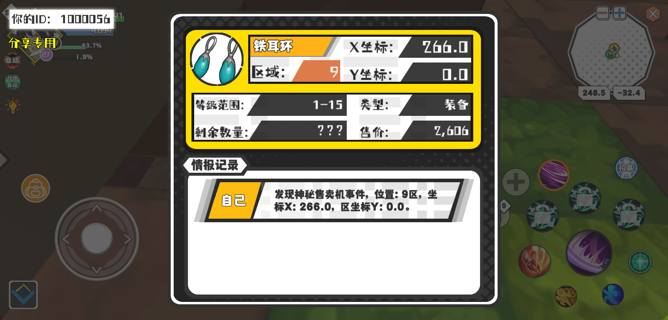 幸运时刻分享! 【神秘售卖机】2月27日上午9点 - 铁耳环【1-15级 】【稀有度:精良】 【9区】 【X:266.0, Y:0.0】