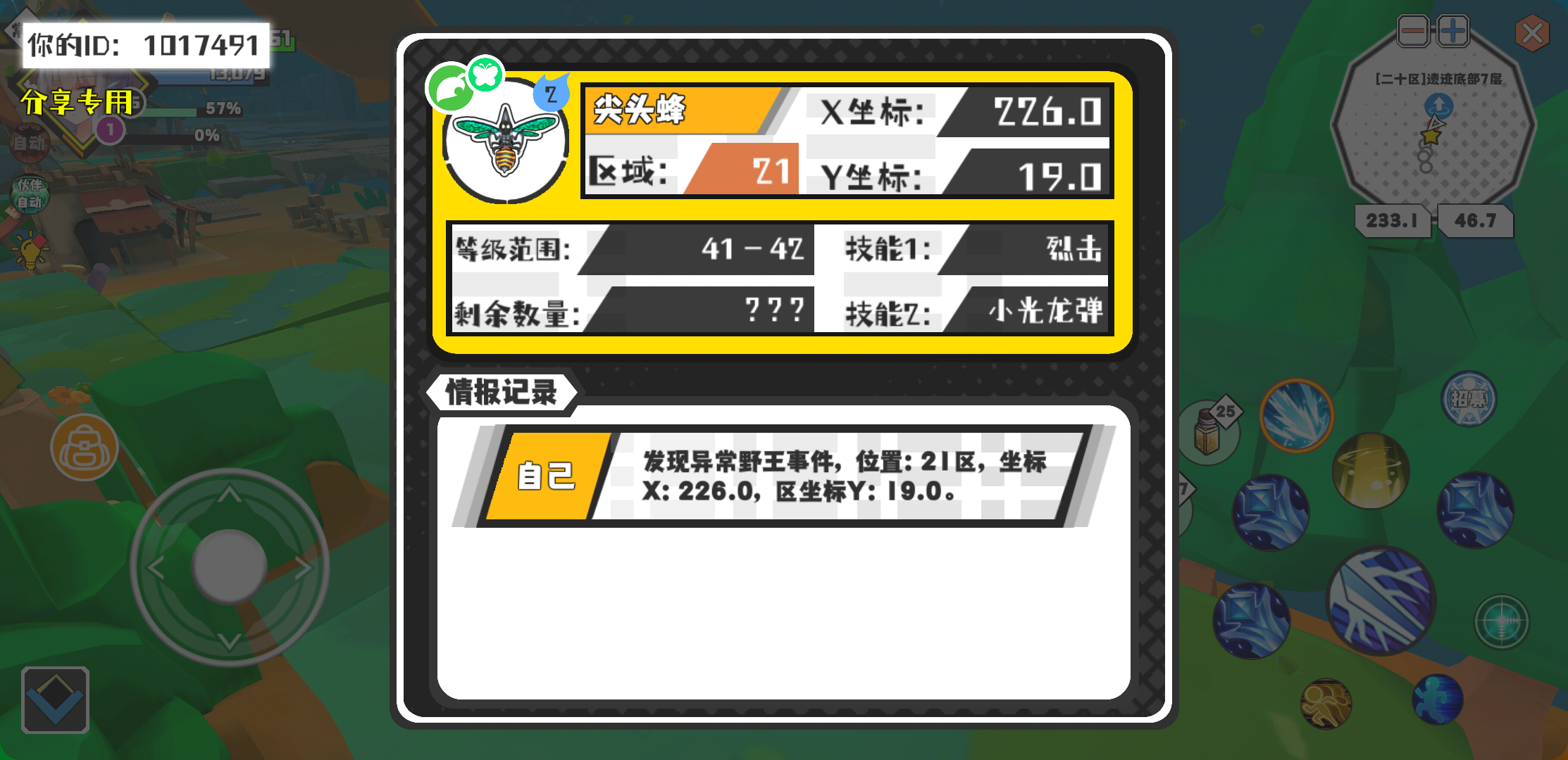 幸运时刻分享! 【野王异常出没】2月27日下午12点 - 尖头蜂【强度2】 【21区】 【X:226.0, Y:19.0】