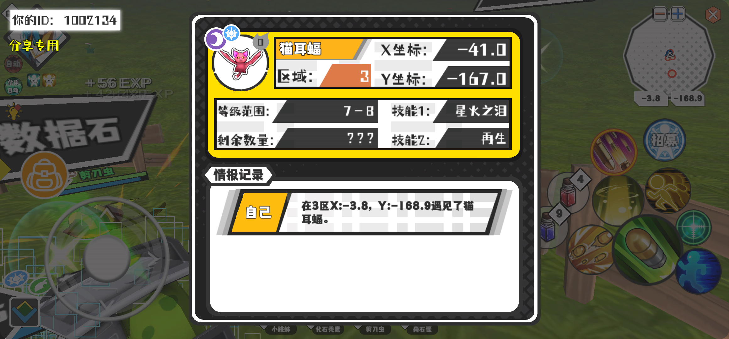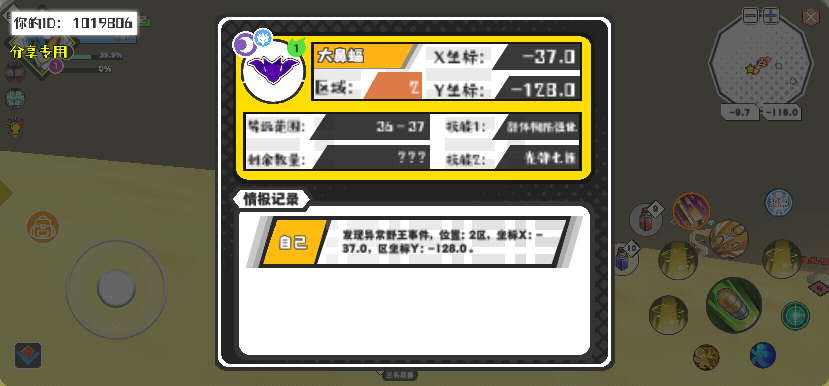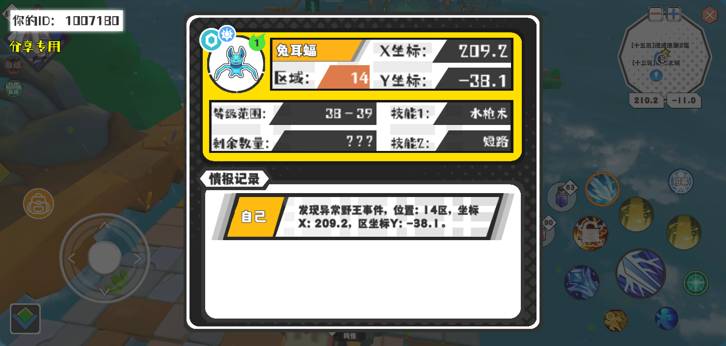 幸运时刻分享! 【野王异常出没】2月25日下午10点 - 兔耳蝠【强度1】 【14区】 【X:209.2, Y:-38.1】