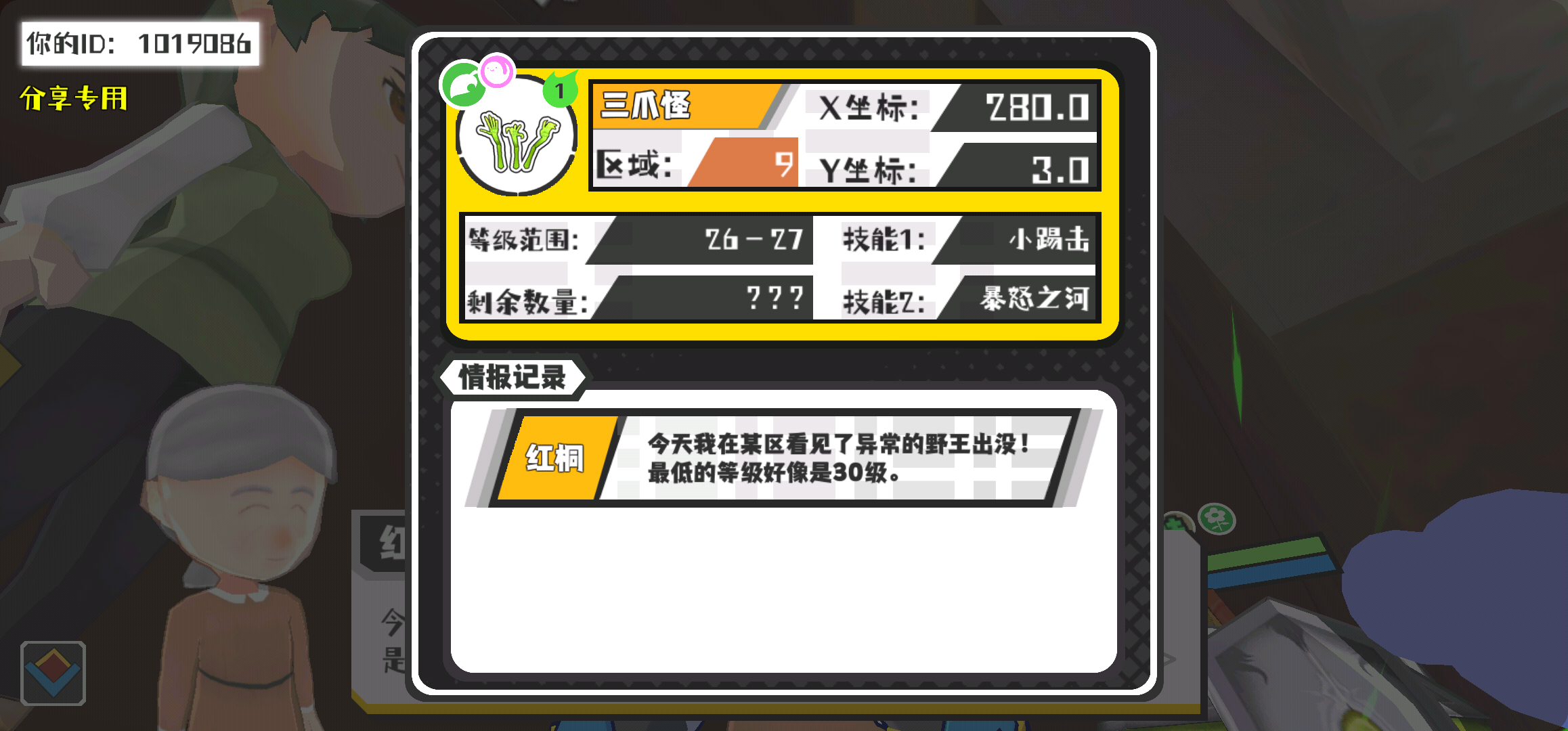 幸运时刻分享! 【野王异常出没】2月26日上午2点 - 三爪怪【强度1】 【9区】 【X:280.0, Y:3.0】