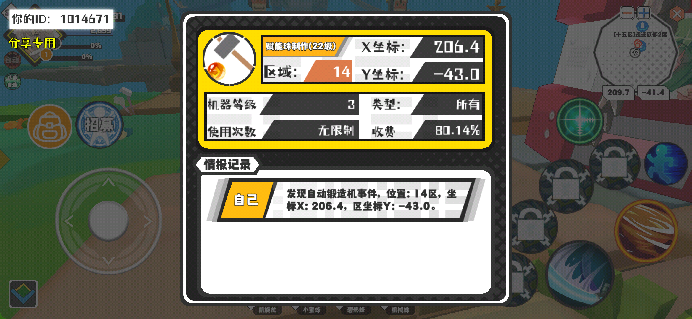 幸运时刻分享! 【自动锻造机】2月26日上午1点 - 赋能珠制作(22级)【3级机器】 【14区】 【X:206.4, Y:-43.0】