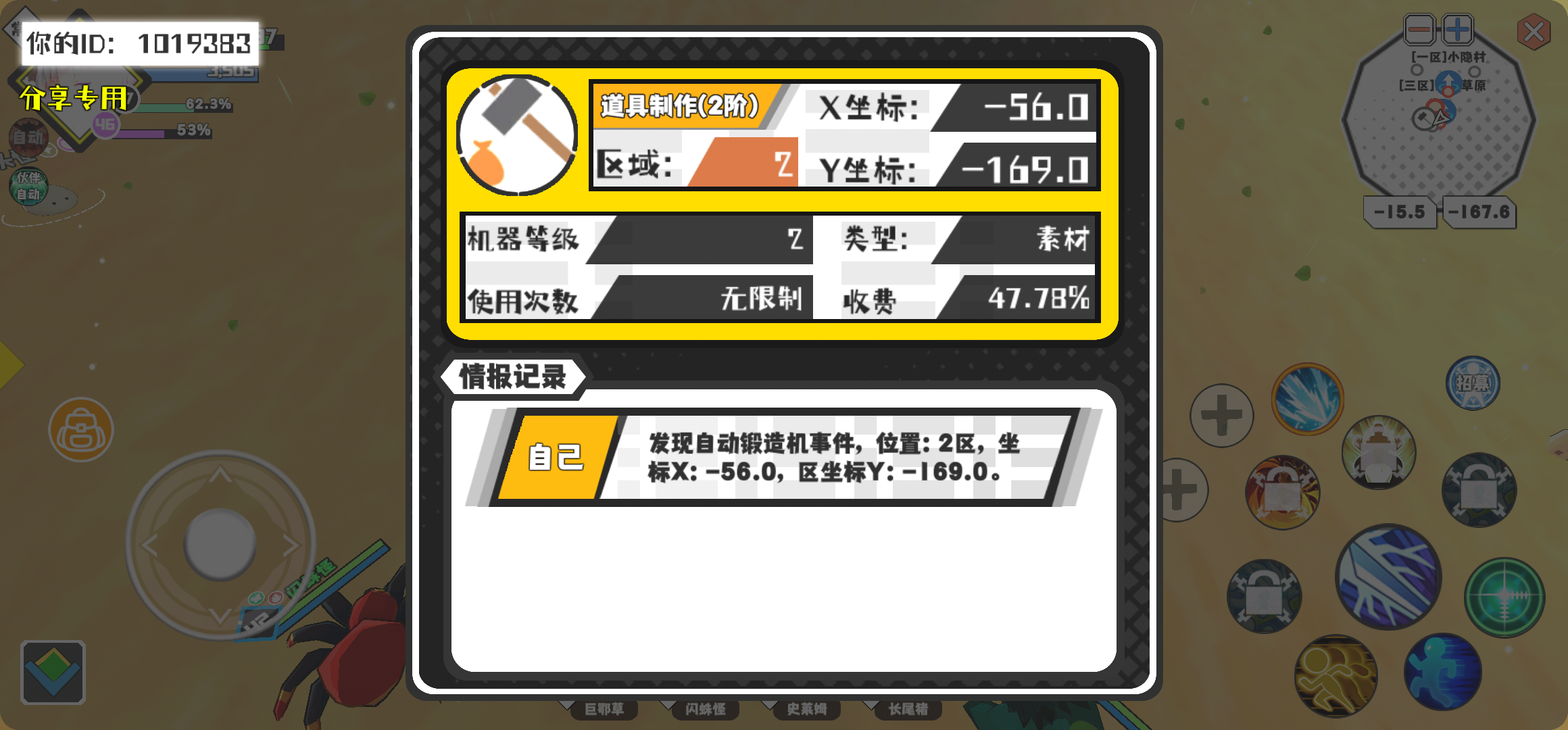 幸运时刻分享! 【自动锻造机】2月26日上午12点 - 道具制作(2阶)【2级机器】 【2区】 【X:-56.0, Y:-169.0】