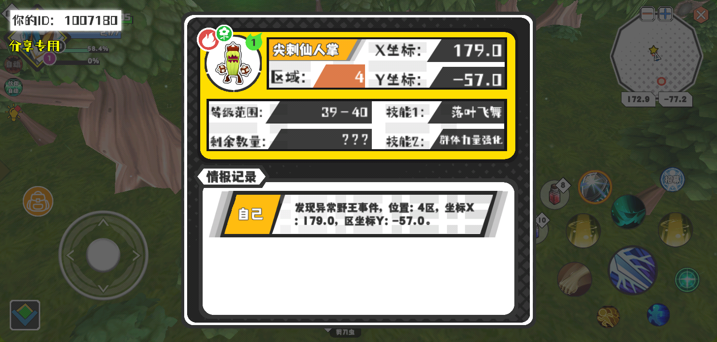 幸运时刻分享! 【野王异常出没】2月22日下午4点 - 尖刺仙人掌【强度1】 【4区】 【X:179.0, Y:-57.0】