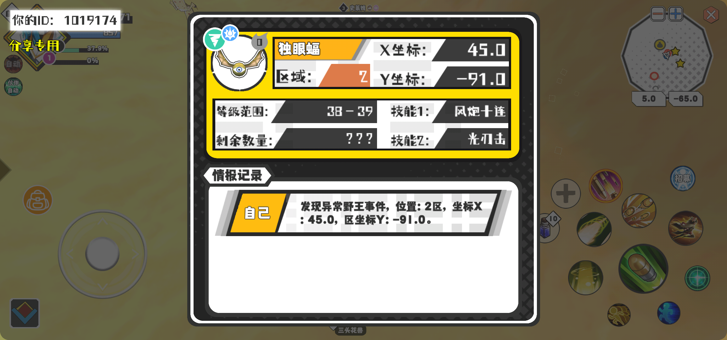 幸运时刻分享! 【野王异常出没】2月22日下午12点 - 独眼蝠【强度0】 【2区】 【X:45.0, Y:-91.0】