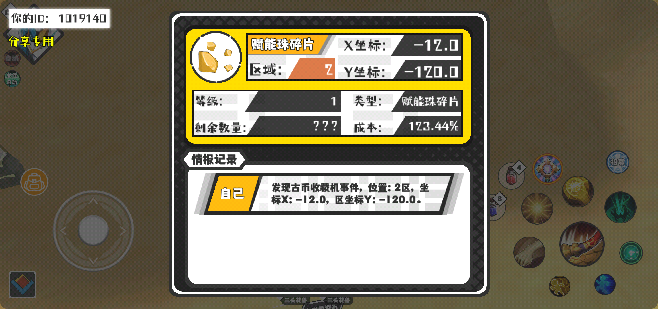 幸运时刻分享! 【古币收藏机】2月22日上午1点 - 赋能珠碎片 【2区】 【X:-12.0, Y:-120.0】