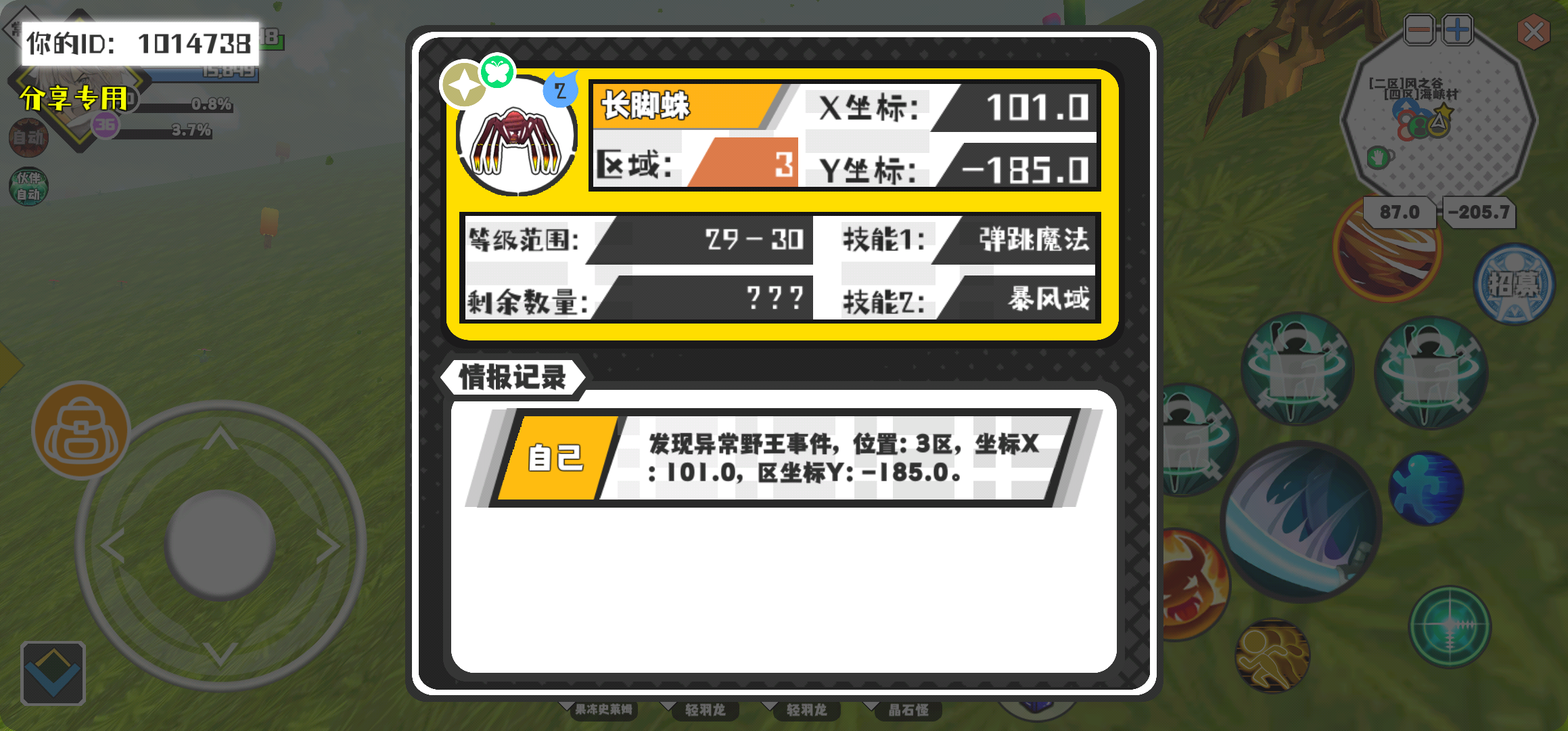 幸运时刻分享! 【野王异常出没】2月22日上午9点 - 长脚蛛【强度2】 【3区】 【X:101.0, Y:-185.0】