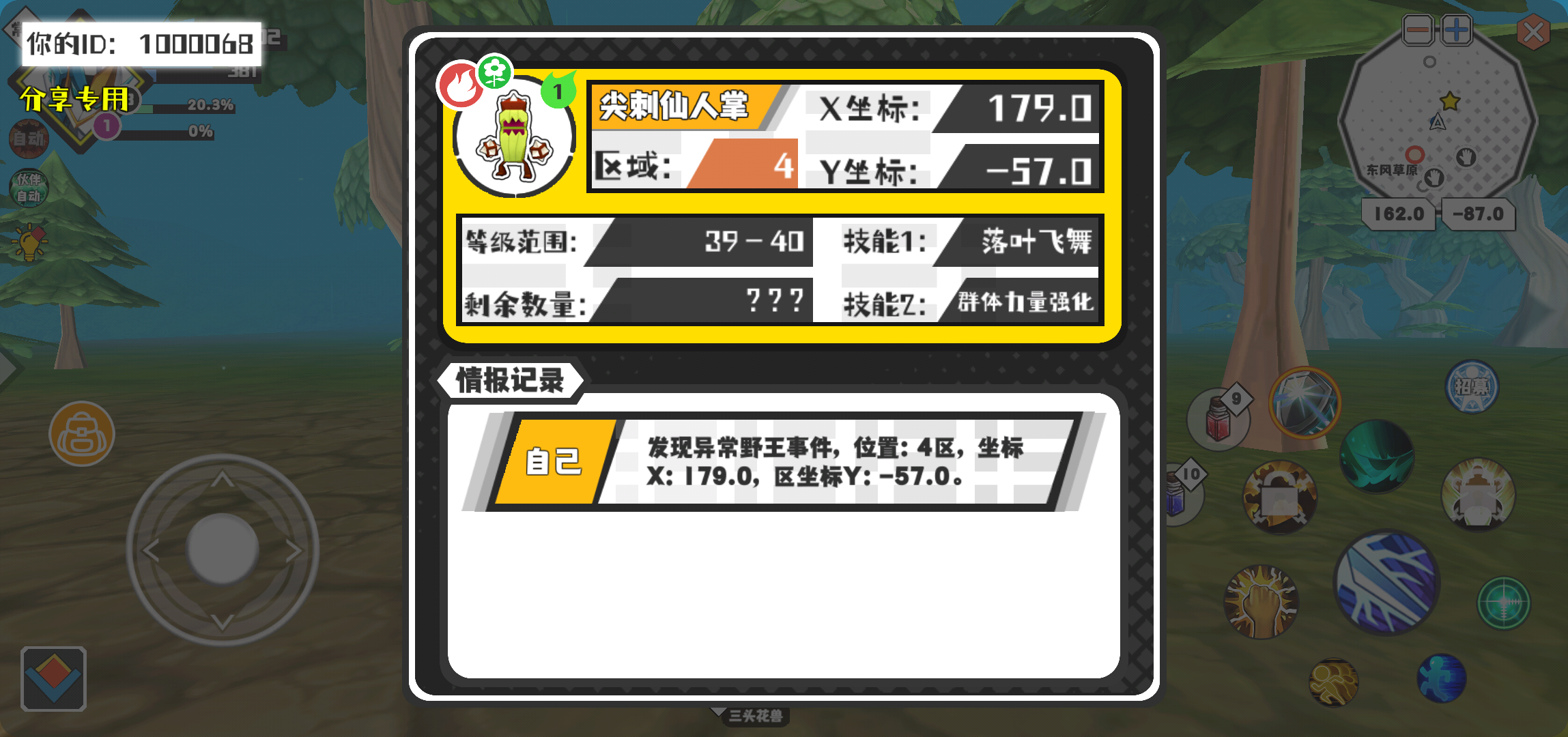 幸运时刻分享! 【野王异常出没】2月21日下午9点 - 尖刺仙人掌【强度1】 【4区】 【X:179.0, Y:-57.0】