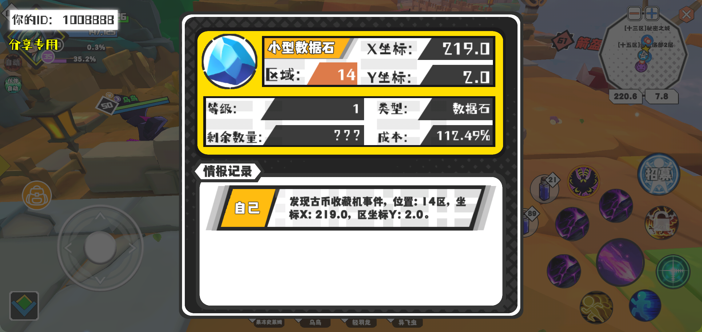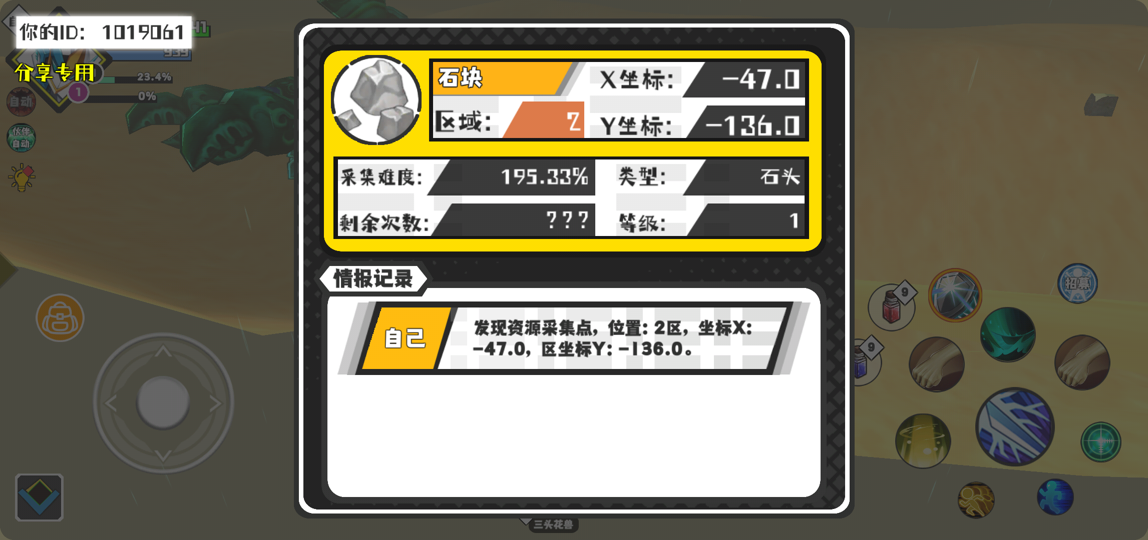 幸运时刻分享! 【资源采集点】2月21日下午9点 - 石块【1级】 【2区】 【X:-47.0, Y:-136.0】