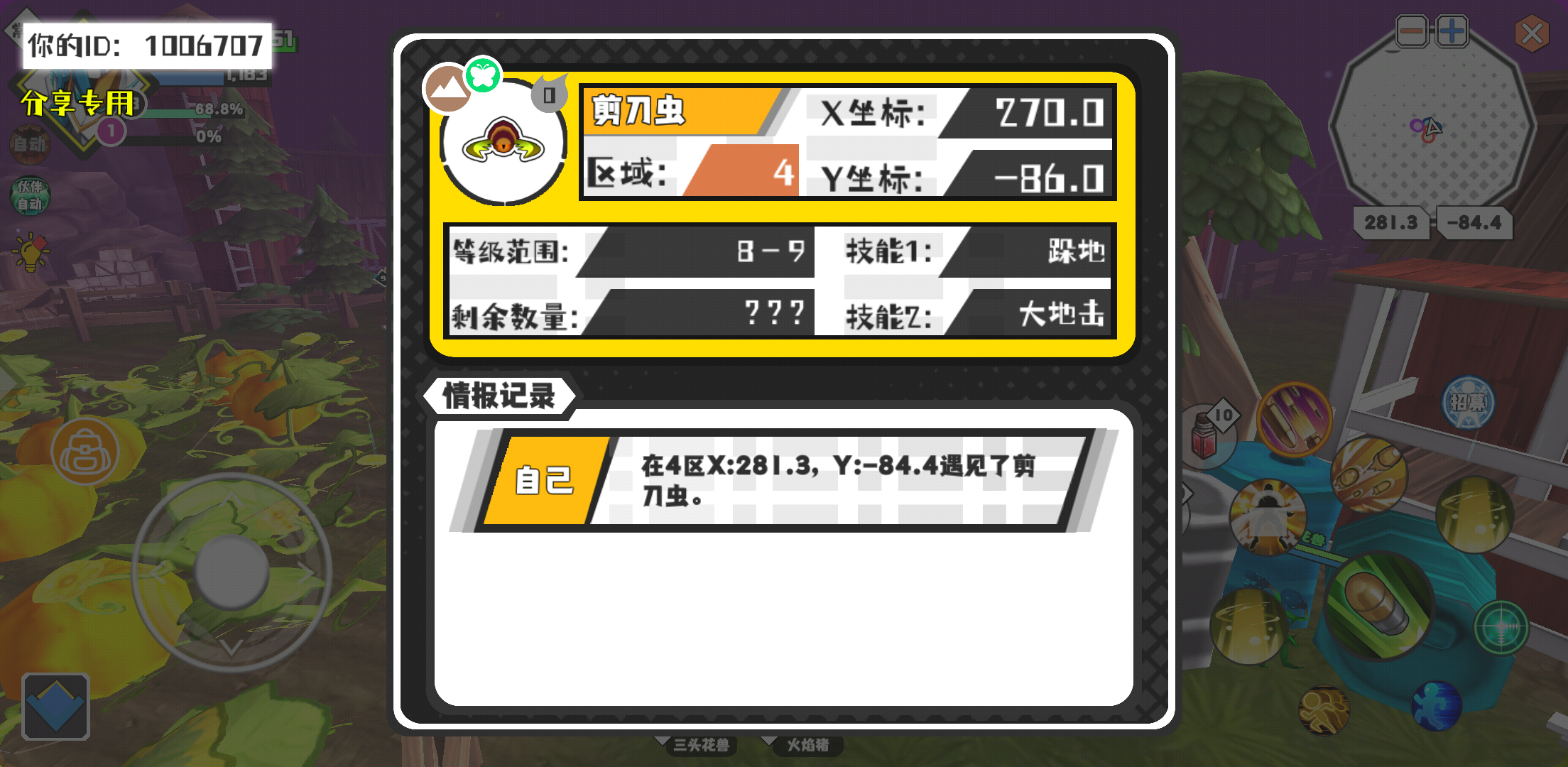 幸运时刻分享! 【魔物异常出没】2月21日下午6点 - 剪刀虫【强度0】 【4区】 【X:270.0, Y:-86.0】