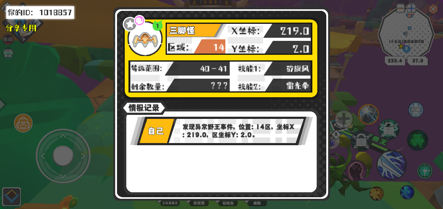 幸运时刻分享! 【野王异常出没】2月21日下午2点 - 三脚怪【强度1】 【14区】 【X:219.0, Y:2.0】