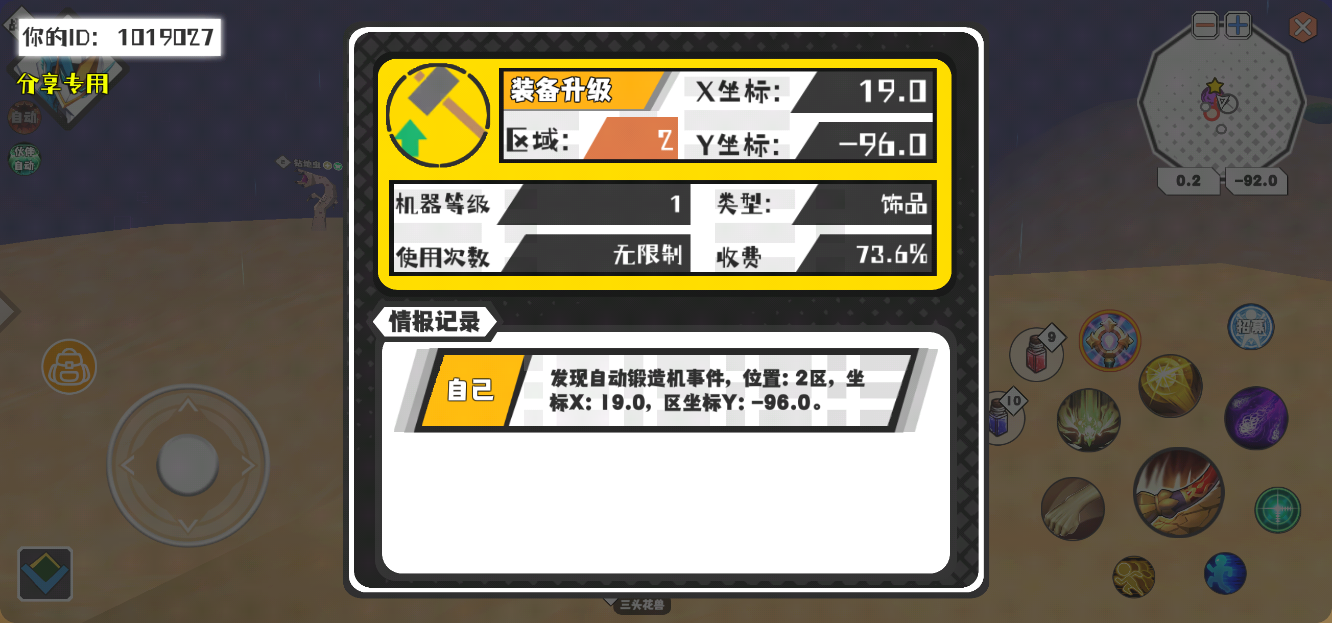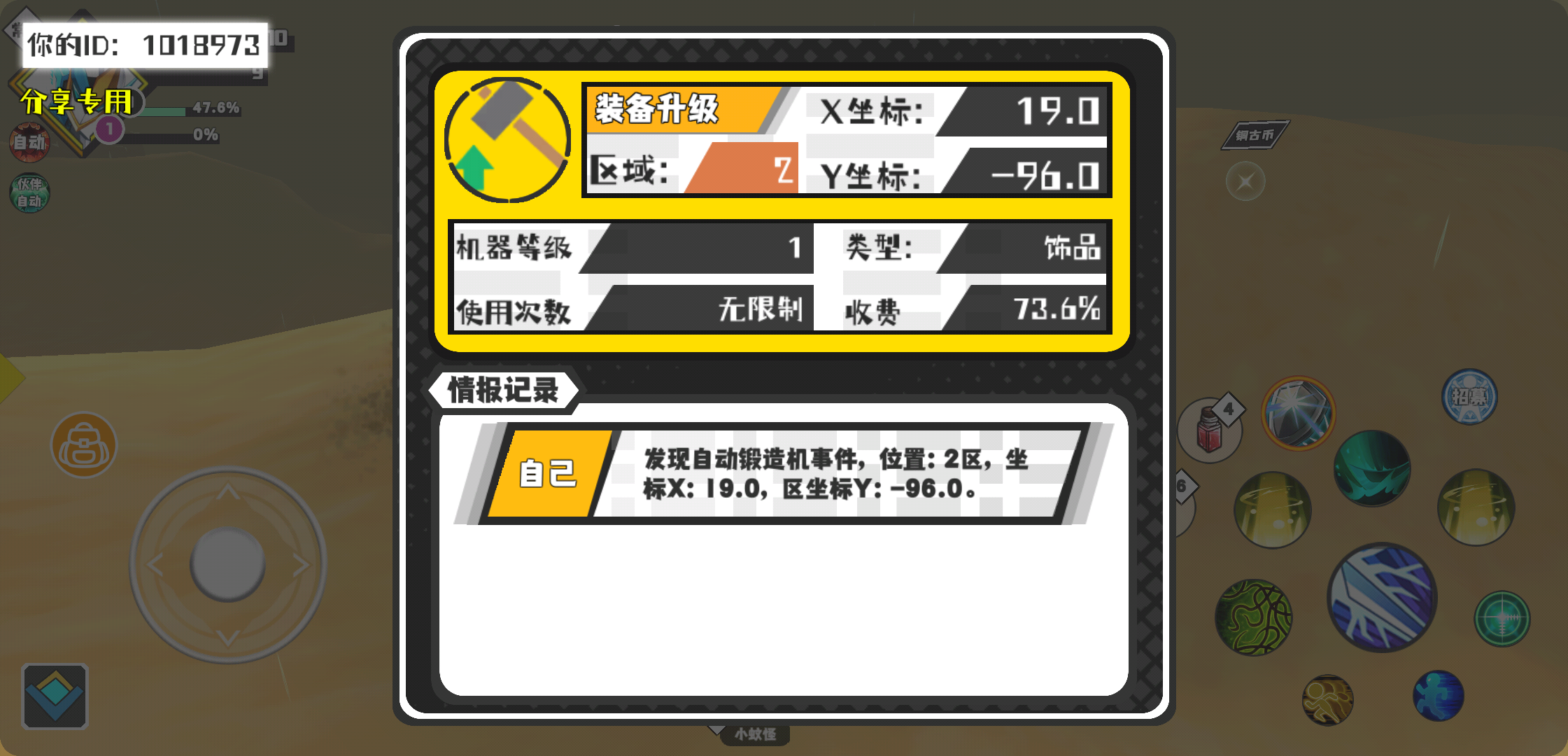 幸运时刻分享! 【自动锻造机】2月21日下午2点 - 装备升级【1级机器】 【2区】 【X:19.0, Y:-96.0】