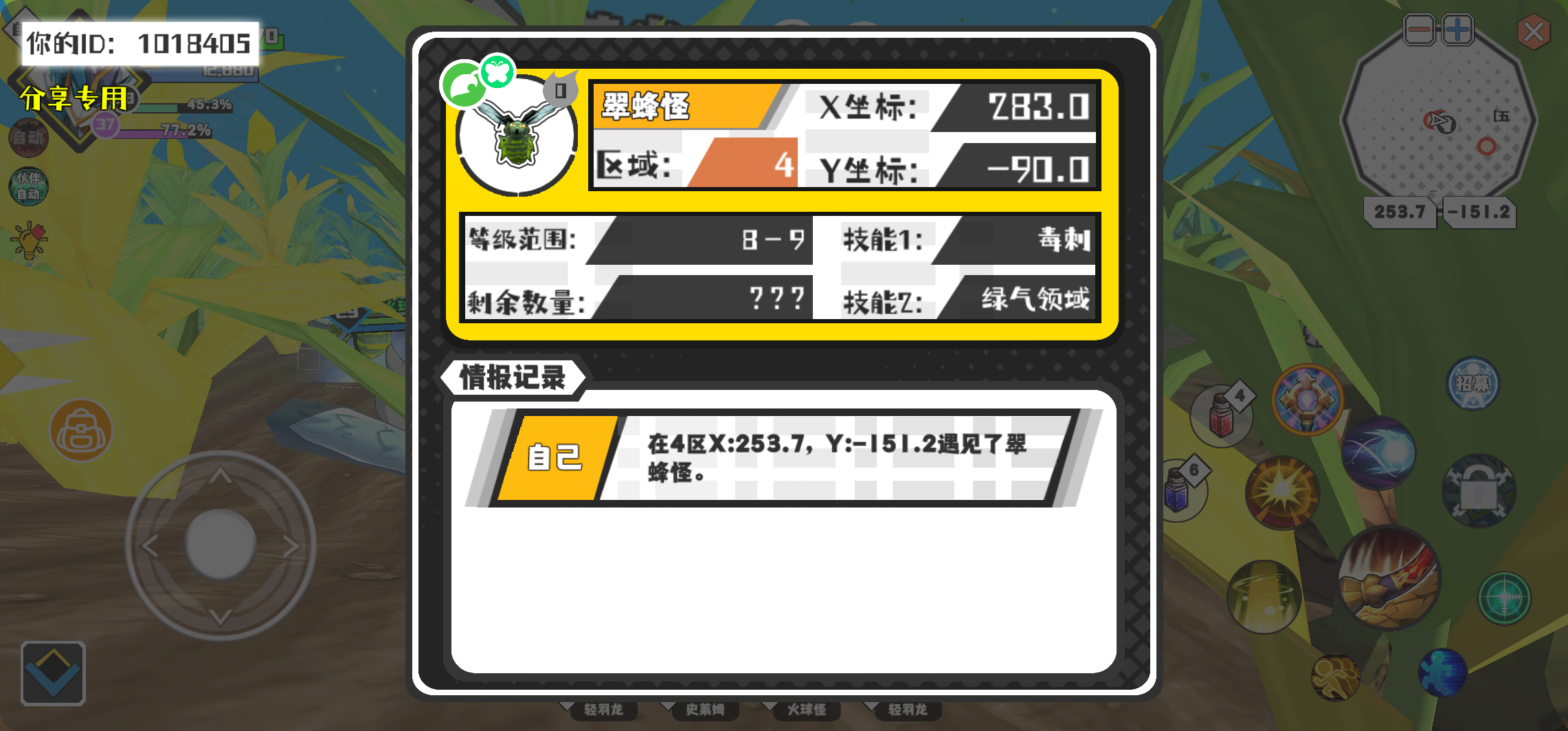 幸运时刻分享! 【魔物异常出没】2月19日下午11点 - 翠蜂怪【强度0】 【4区】 【X:283.0, Y:-90.0】