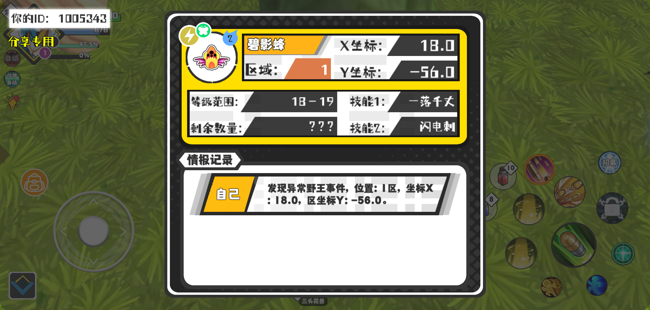 幸运时刻分享! 【野王异常出没】2月19日下午11点 - 碧影蜂【强度2】 【1区】 【X:18.0, Y:-56.0】