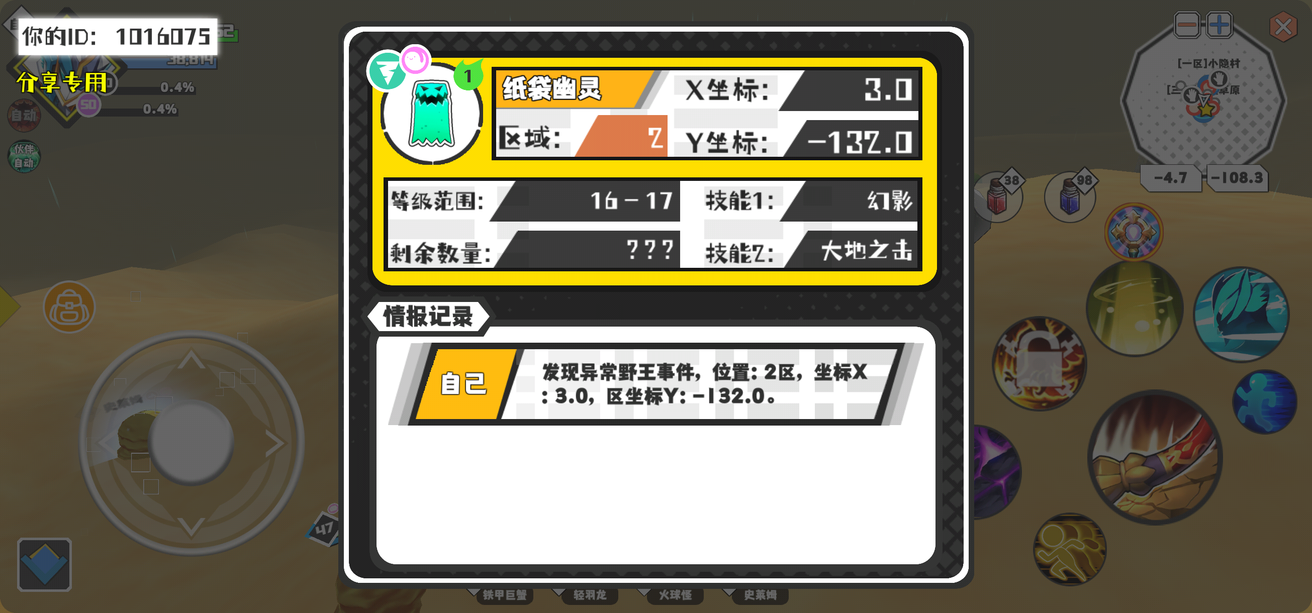 幸运时刻分享! 【野王异常出没】2月19日下午3点 - 纸袋幽灵【强度1】 【2区】 【X:3.0, Y:-132.0】