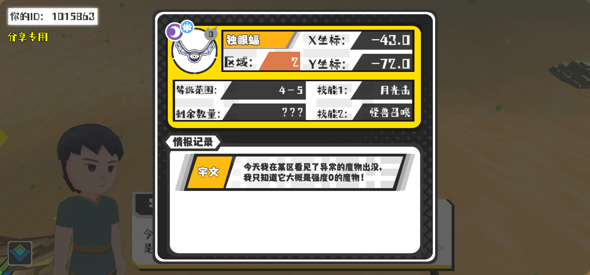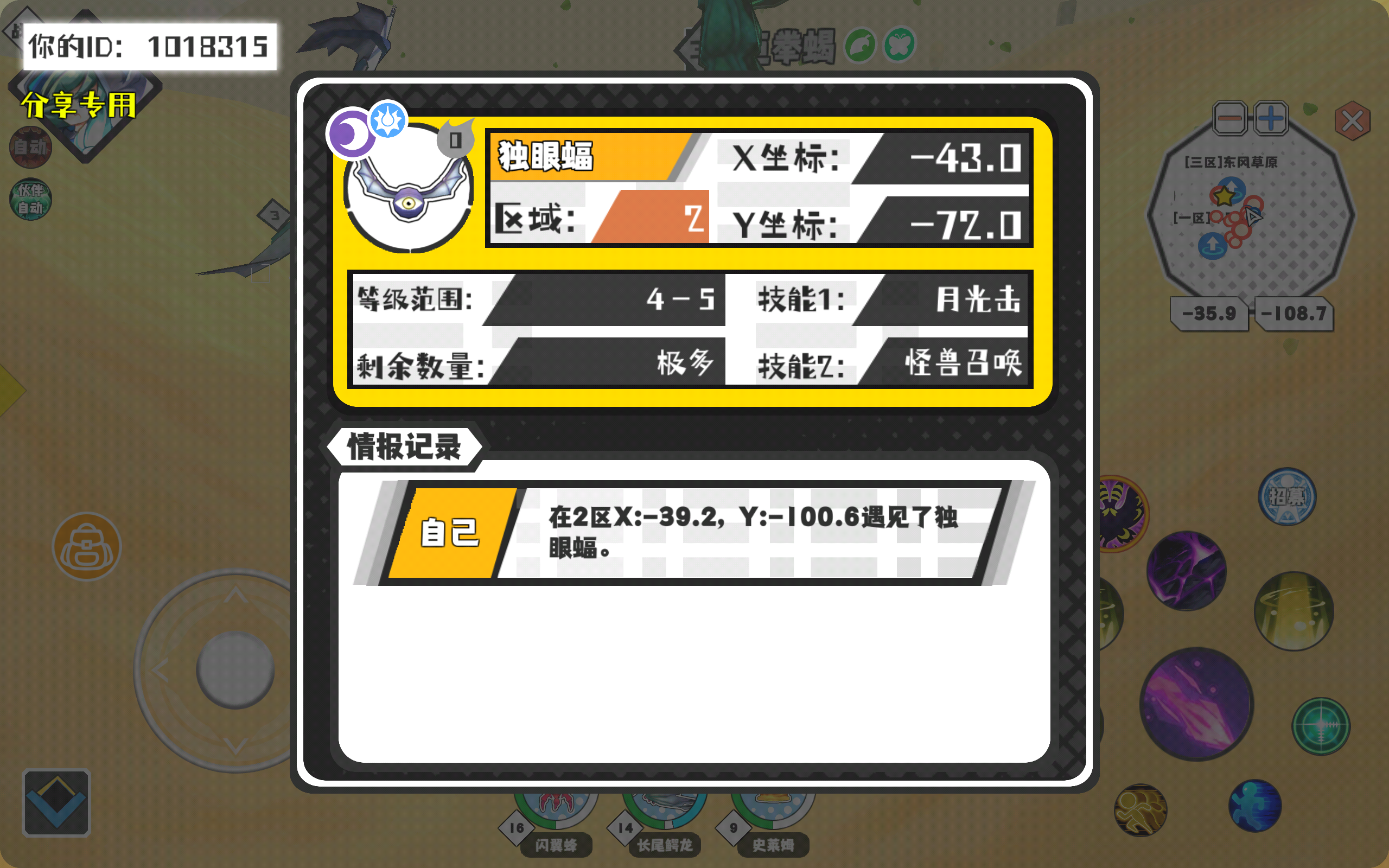 幸运时刻分享! 【魔物异常出没】2月18日下午9点 - 独眼蝠【强度0】 【2区】 【X:-43.0, Y:-72.0】