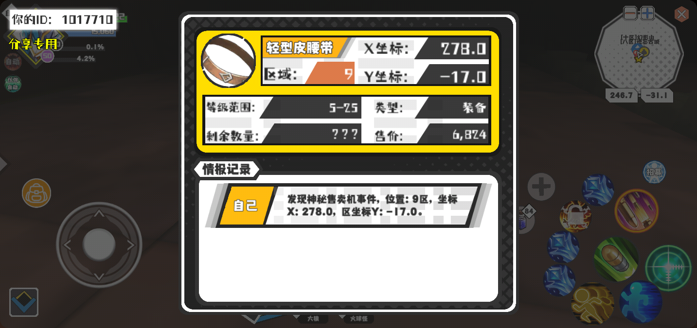 幸运时刻分享! 【神秘售卖机】2月18日下午11点 - 轻型皮腰带【5-25级 】【稀有度:精良】 【9区】 【X:278.0, Y:-17.0】