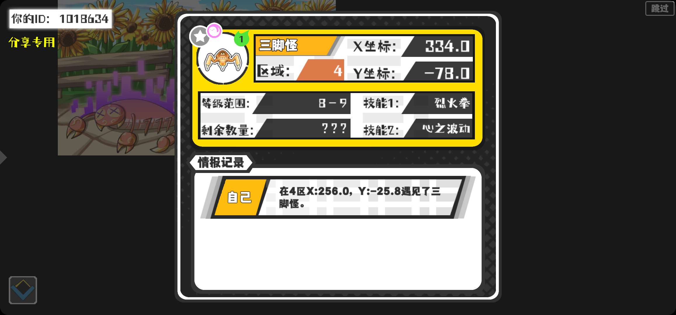 幸运时刻分享! 【魔物异常出没】2月18日上午12点 - 三脚怪【强度1】 【4区】 【X:334.0, Y:-78.0】