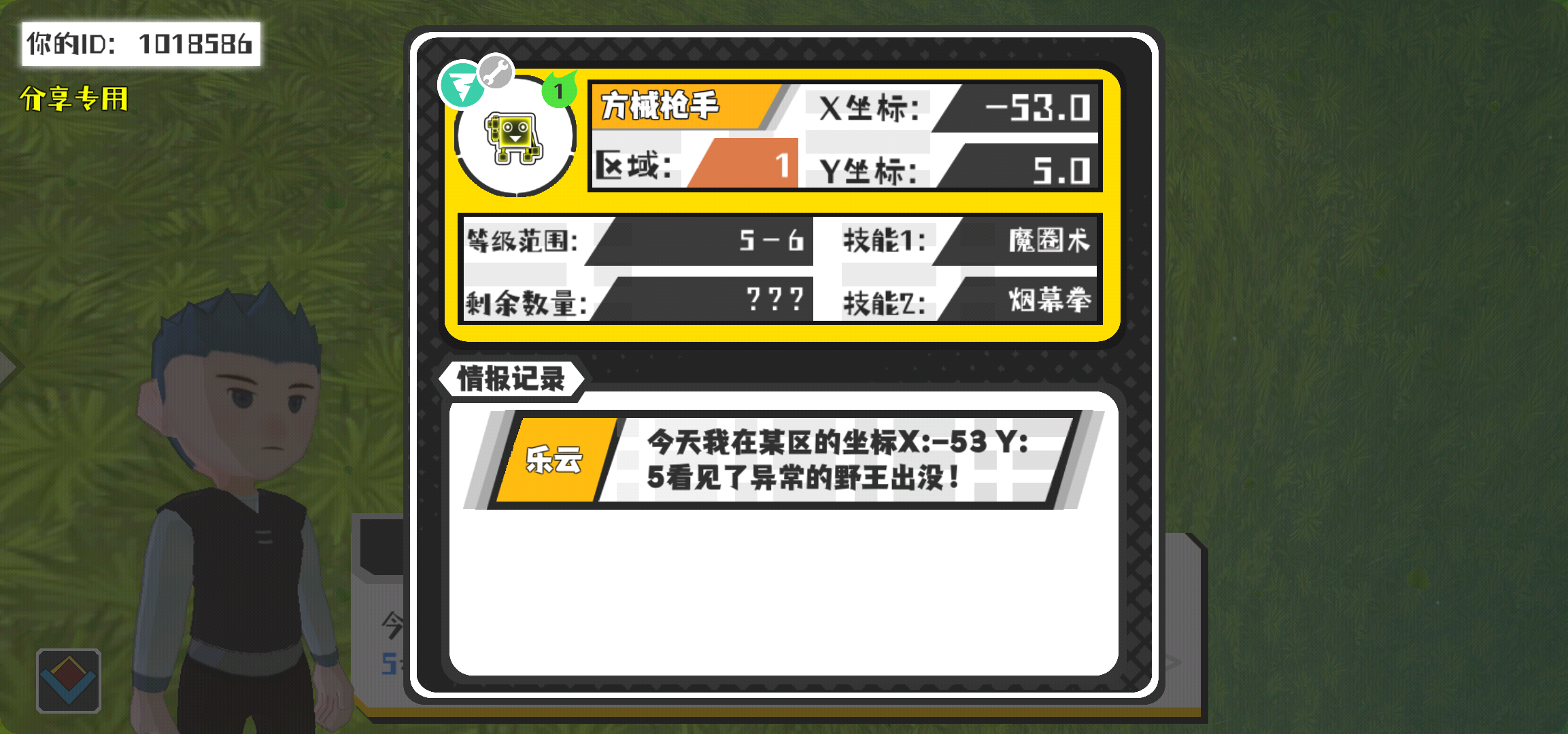 幸运时刻分享! 【野王异常出没】2月17日上午3点 - 方械枪手【强度1】 【1区】 【X:-53.0, Y:5.0】
