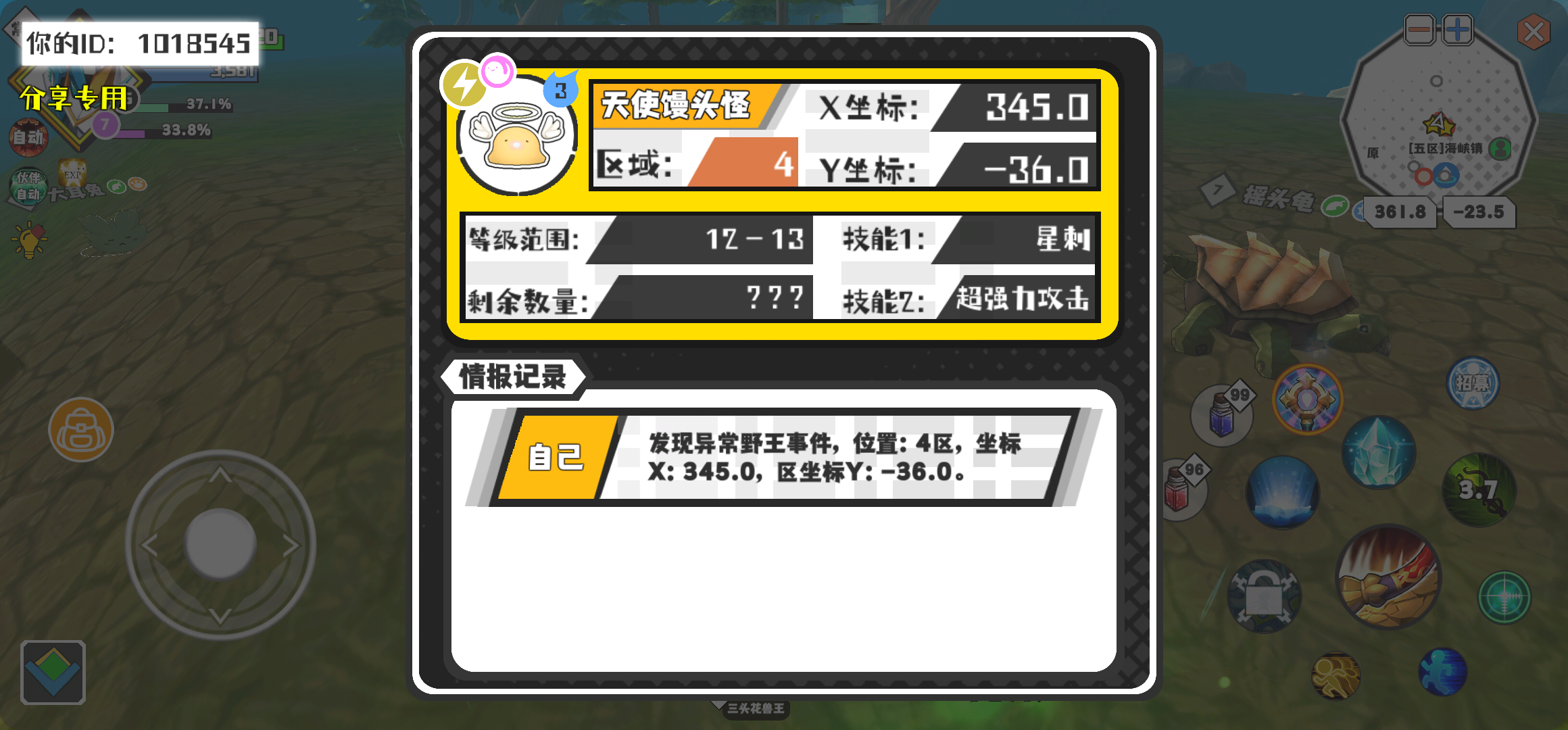 幸运时刻分享! 【野王异常出没】2月17日上午10点 - 天使馒头怪【强度3】 【4区】 【X:345.0, Y:-36.0】