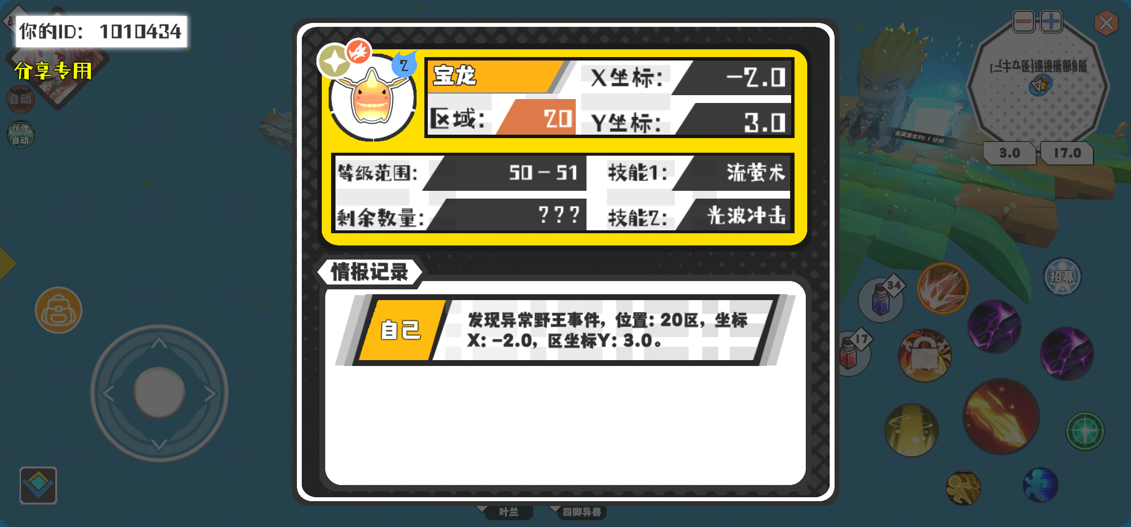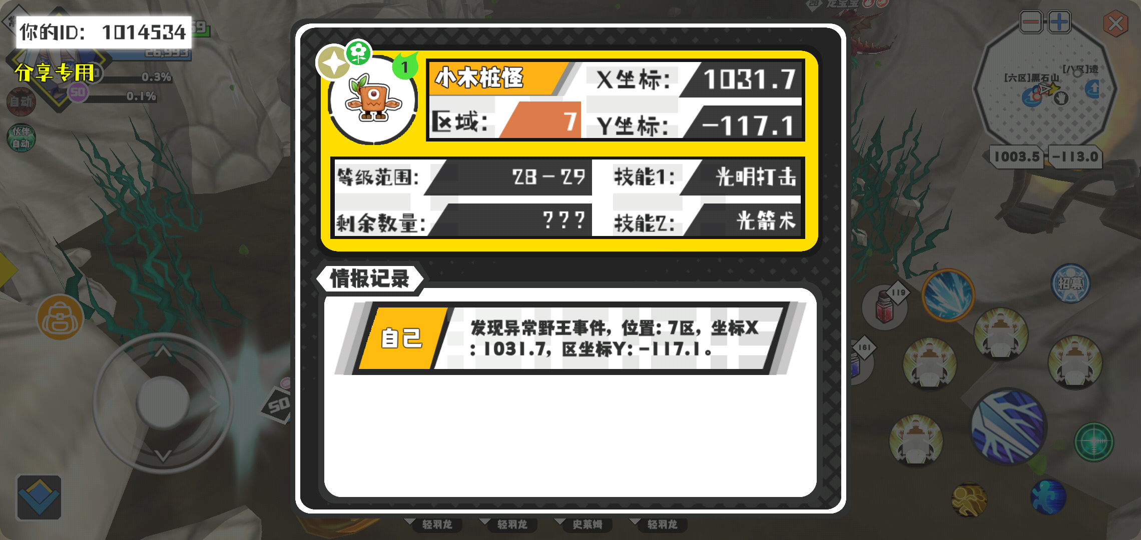 幸运时刻分享! 【野王异常出没】2月16日下午10点 - 小木桩怪【强度1】 【7区】 【X:1031.7, Y:-117.1】