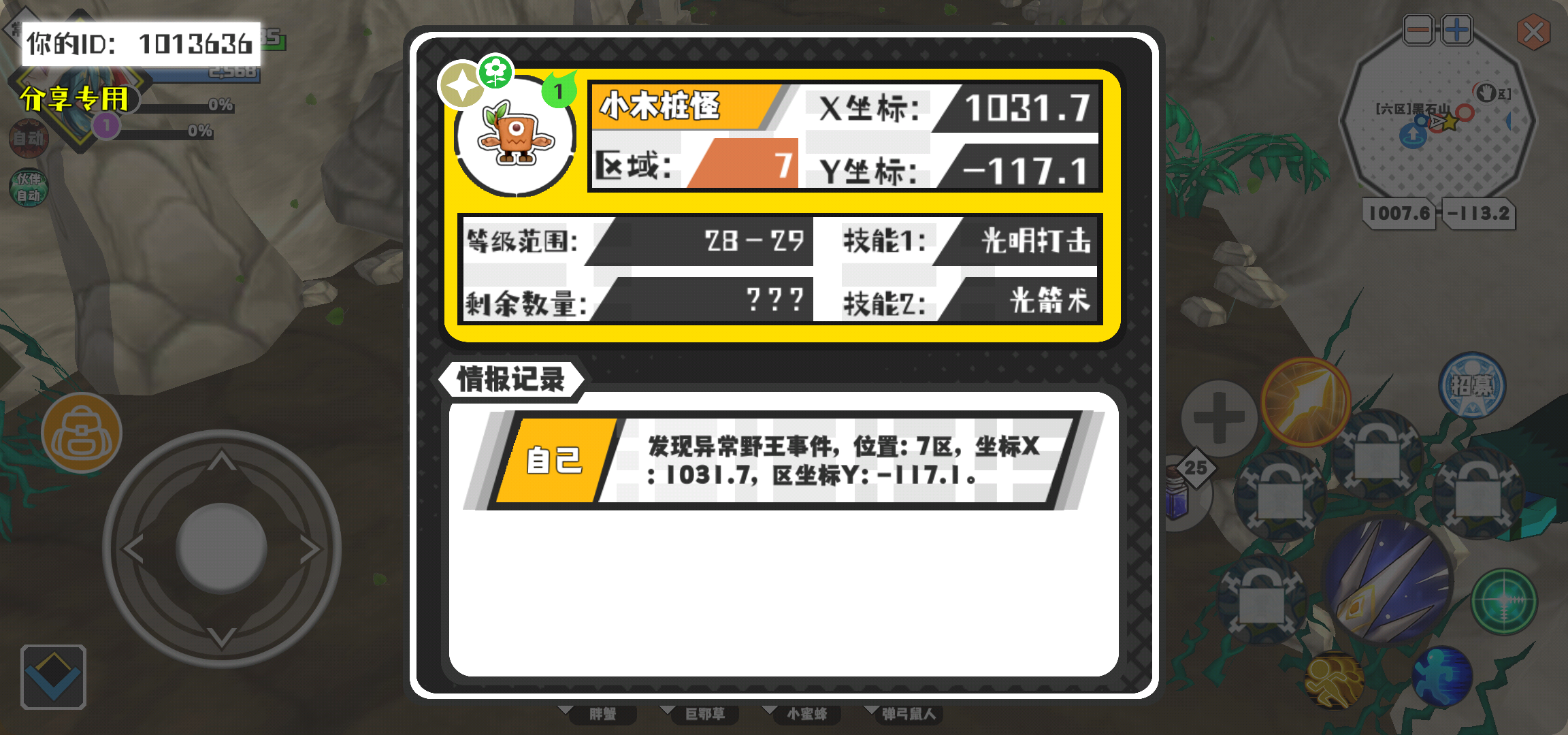 幸运时刻分享! 【野王异常出没】2月16日下午8点 - 小木桩怪【强度1】 【7区】 【X:1031.7, Y:-117.1】