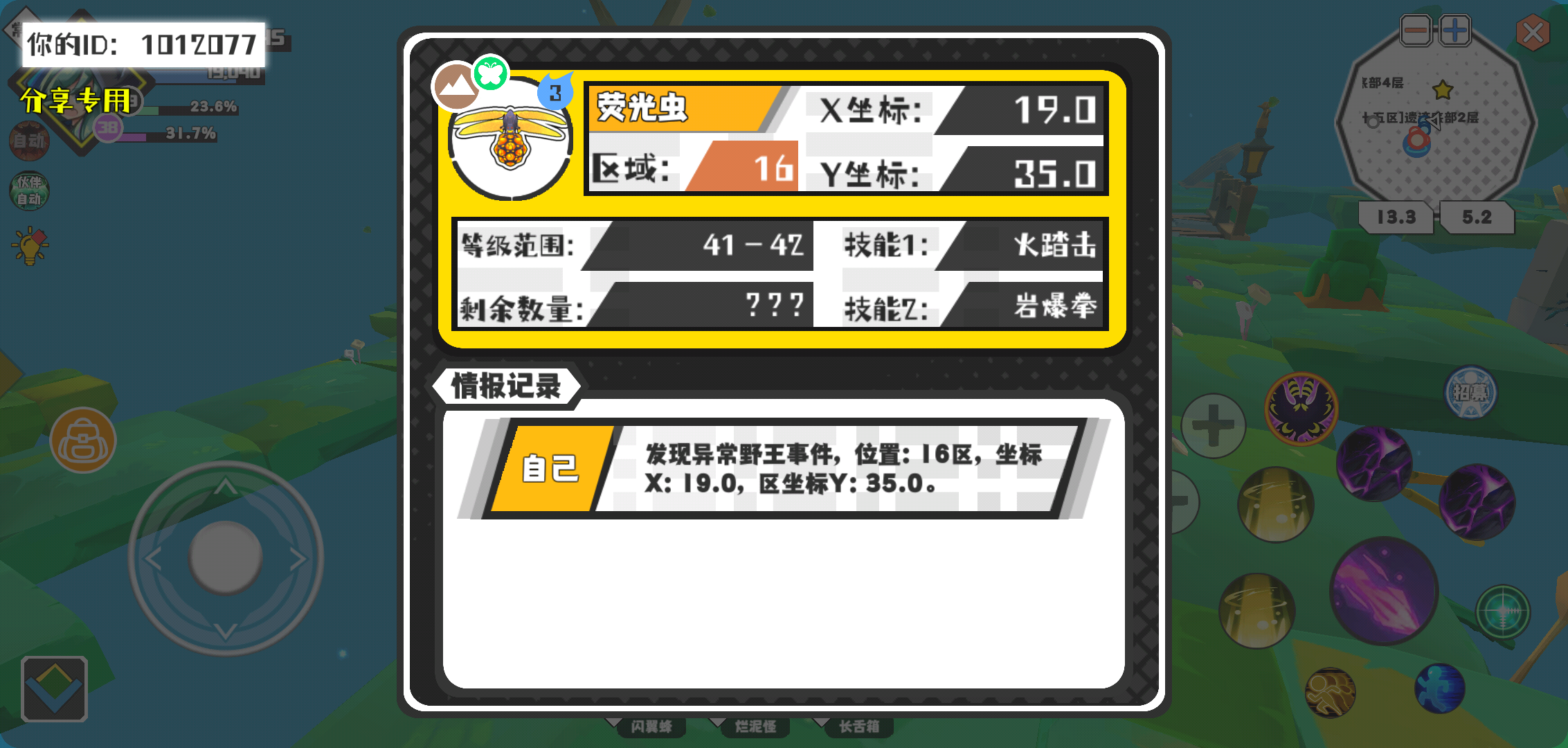 幸运时刻分享! 【野王异常出没】2月16日下午9点 - 荧光虫【强度3】 【16区】 【X:19.0, Y:35.0】