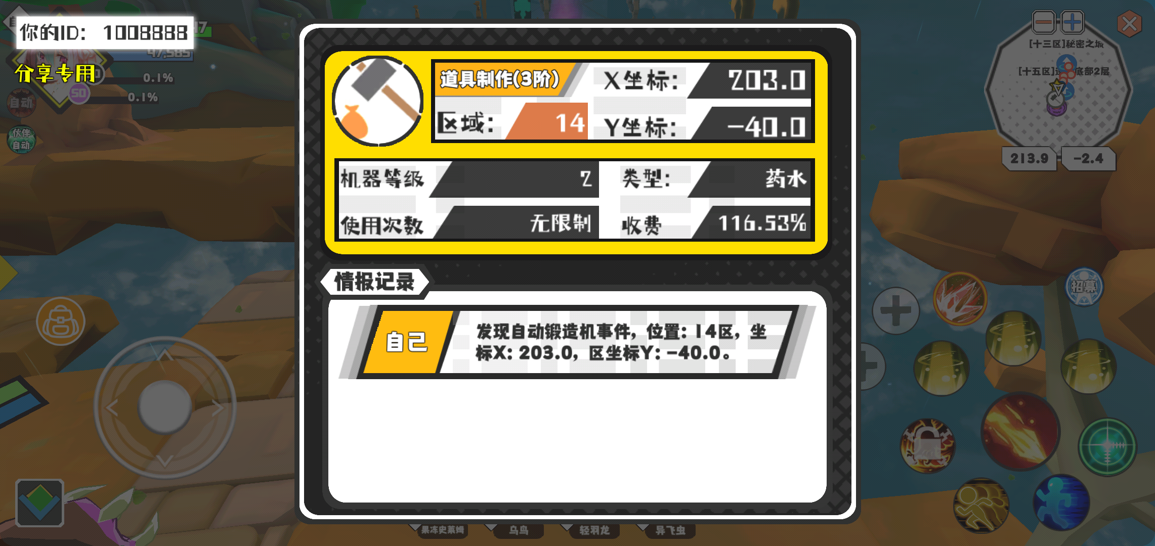 幸运时刻分享! 【自动锻造机】2月16日下午6点 - 道具制作(3阶)【2级机器】 【14区】 【X:203.0, Y:-40.0】