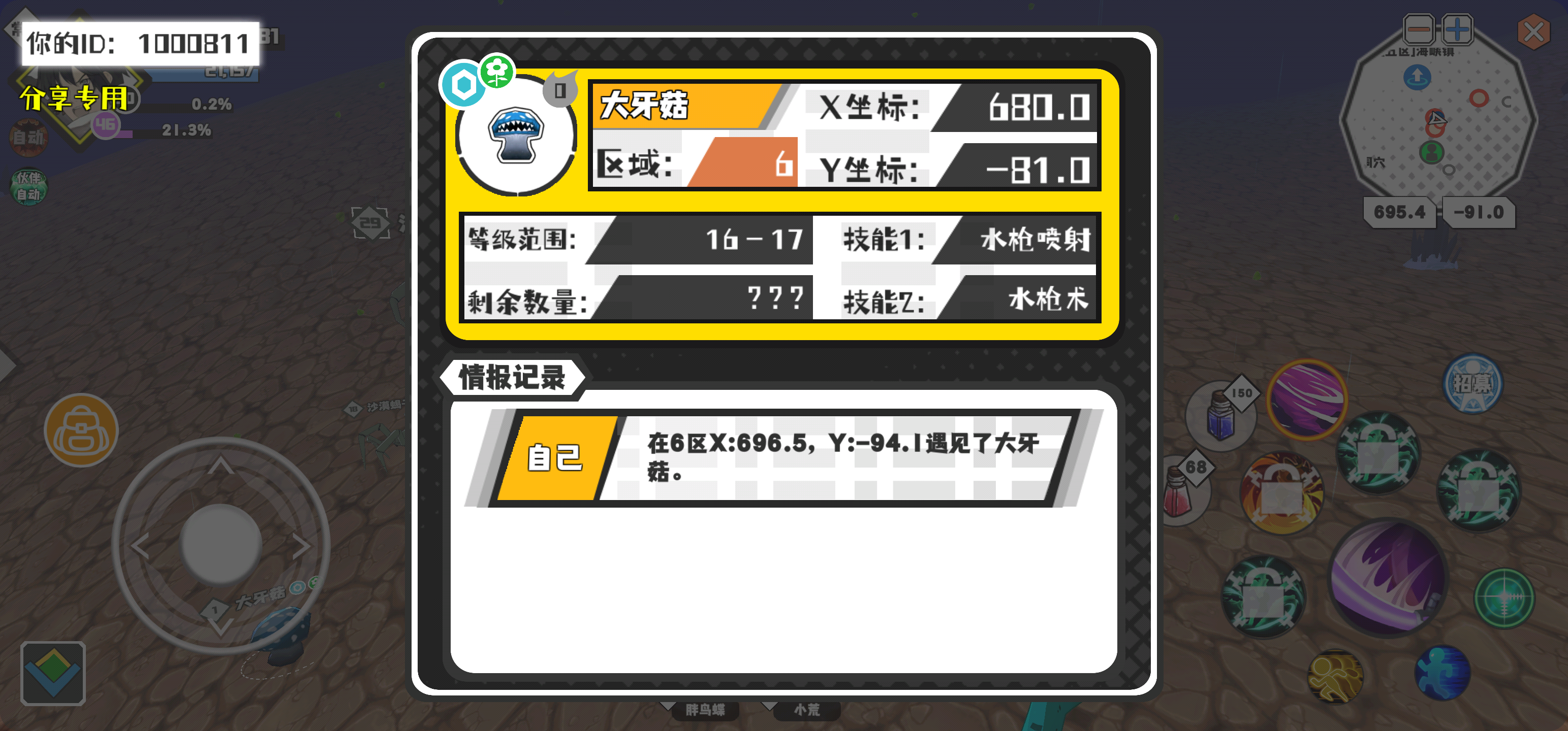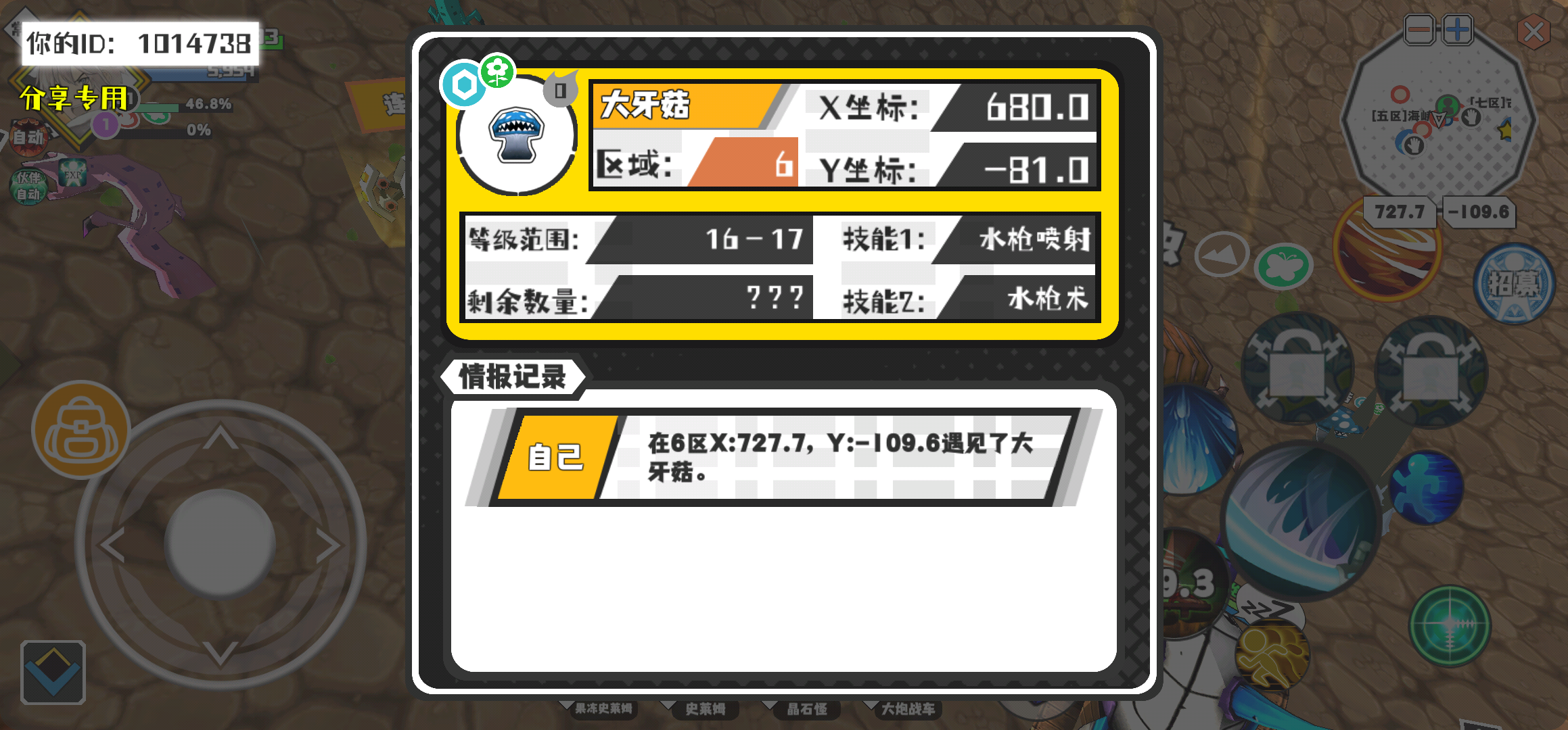 幸运时刻分享! 【魔物异常出没】2月16日下午3点 - 大牙菇【强度0】 【6区】 【X:680.0, Y:-81.0】