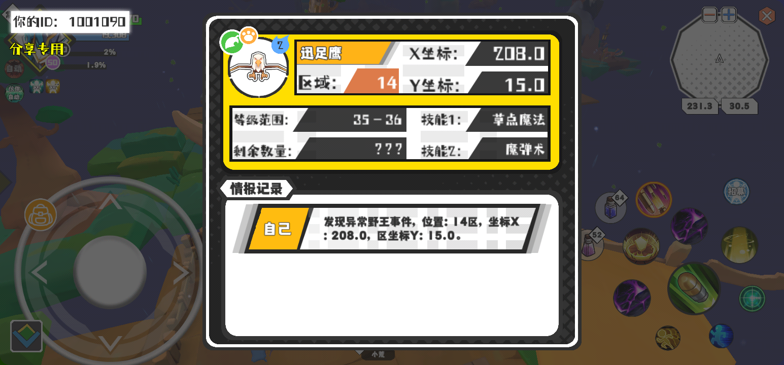 幸运时刻分享! 【野王异常出没】2月16日上午2点 - 迅足鹰【强度2】 【14区】 【X:208.0, Y:15.0】