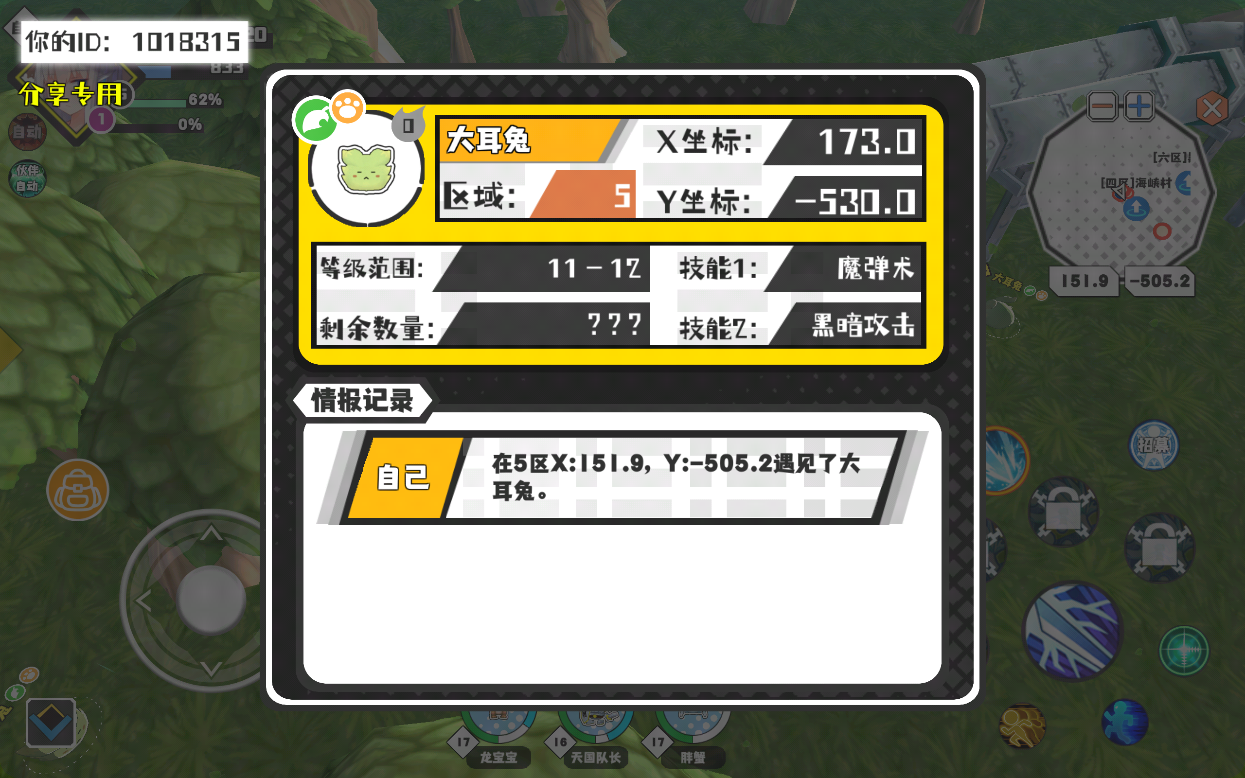 幸运时刻分享! 【魔物异常出没】2月14日下午9点 - 大耳兔【强度0】 【5区】 【X:173.0, Y:-530.0】