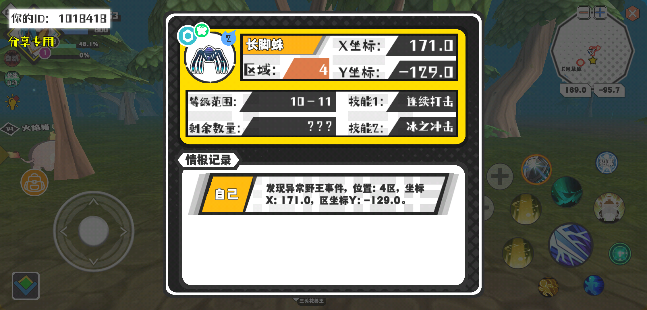 幸运时刻分享! 【野王异常出没】2月14日下午11点 - 长脚蛛【强度2】 【4区】 【X:171.0, Y:-129.0】