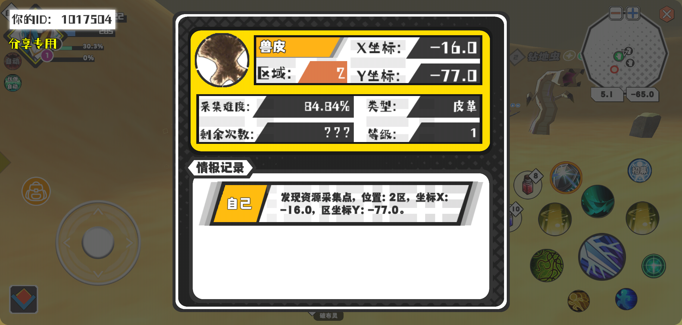幸运时刻分享! 【资源采集点】2月14日下午10点 - 兽皮【1级】 【2区】 【X:-16.0, Y:-77.0】