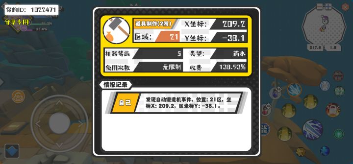 幸运时刻分享! 【自动锻造机】4月17日下午1点 - 道具制作(2阶)【5级机器】 【21区】 【X:209.2, Y:-38.1】