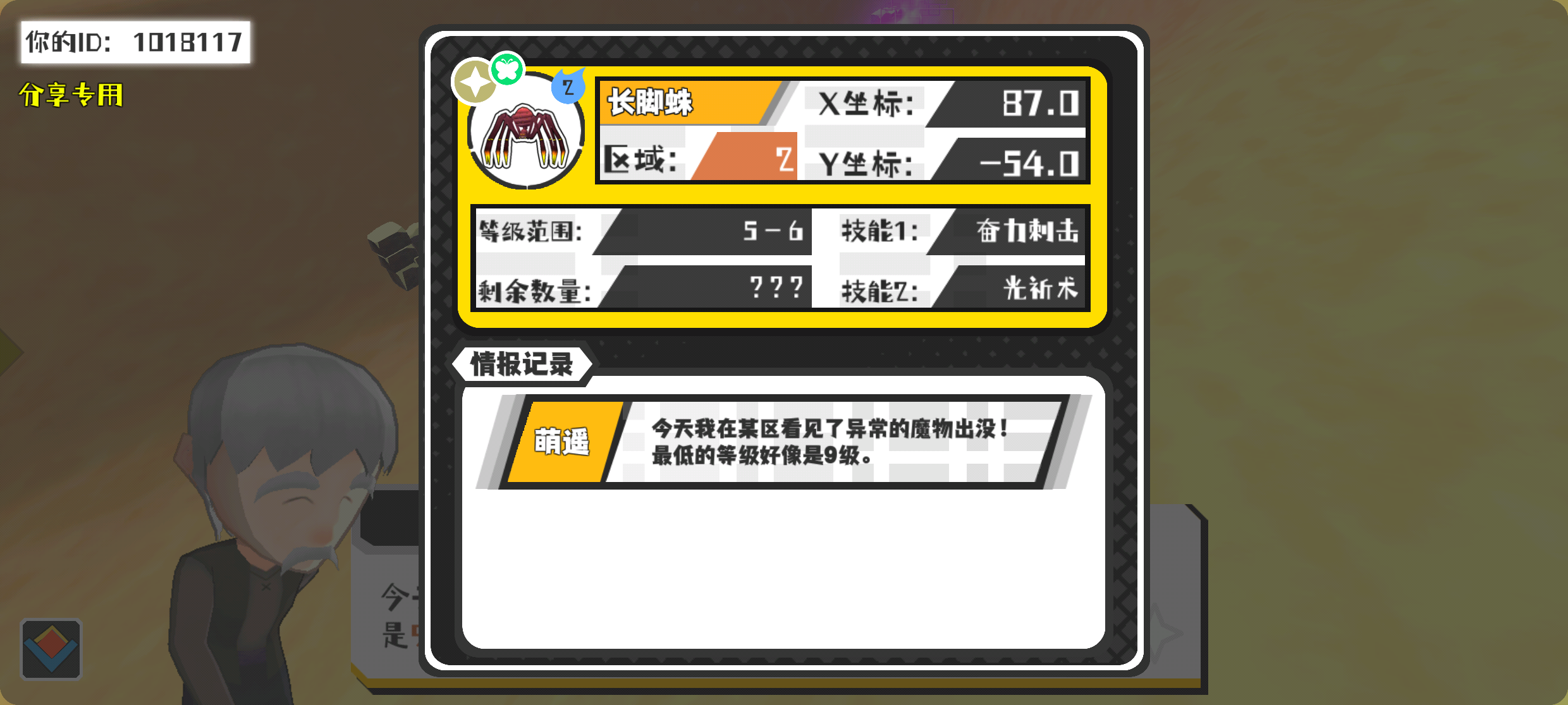 幸运时刻分享! 【魔物异常出没】2月13日上午7点 - 长脚蛛【强度2】 【2区】 【X:87.0, Y:-54.0】