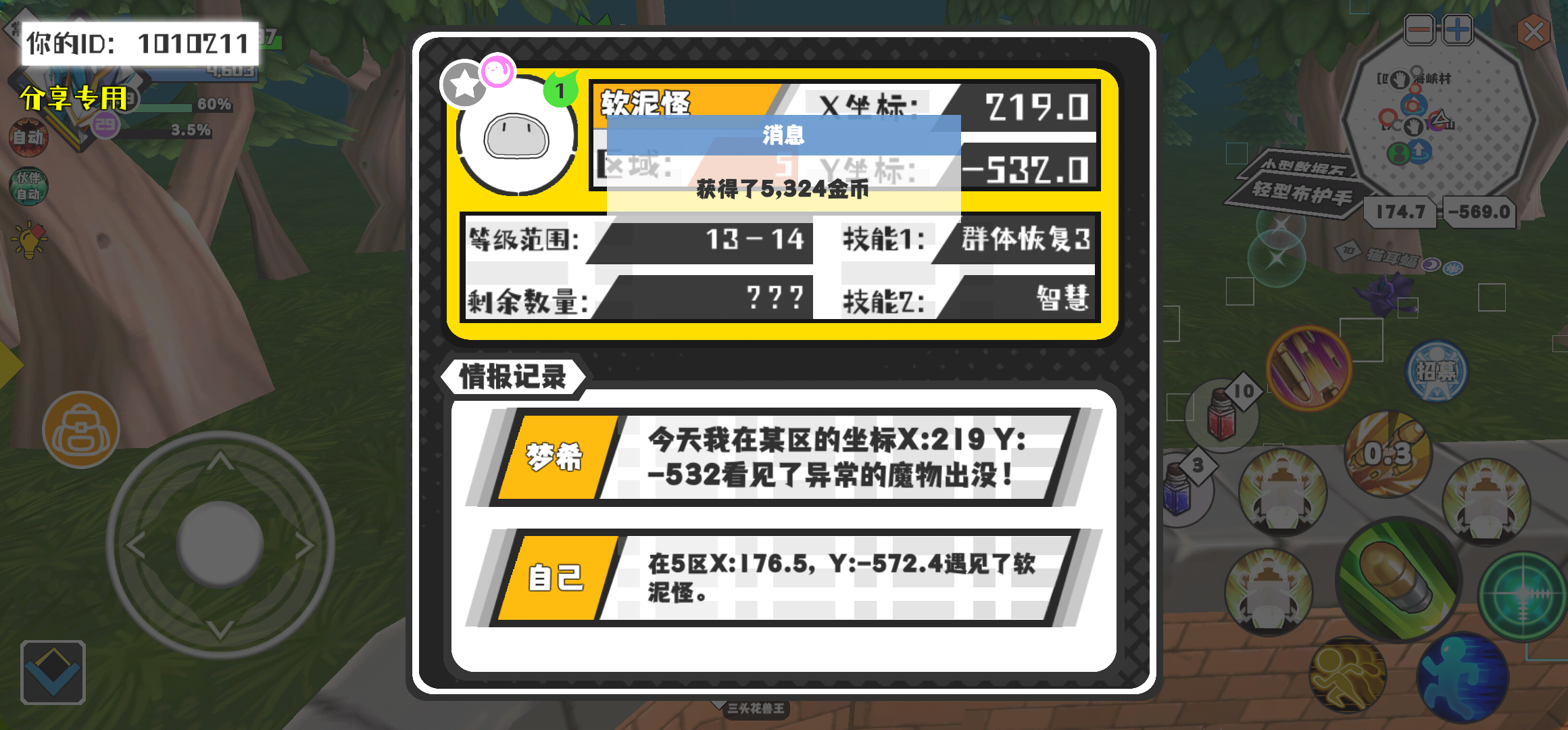 幸运时刻分享! 【魔物异常出没】2月13日上午7点 - 软泥怪【强度1】 【5区】 【X:219.0, Y:-532.0】