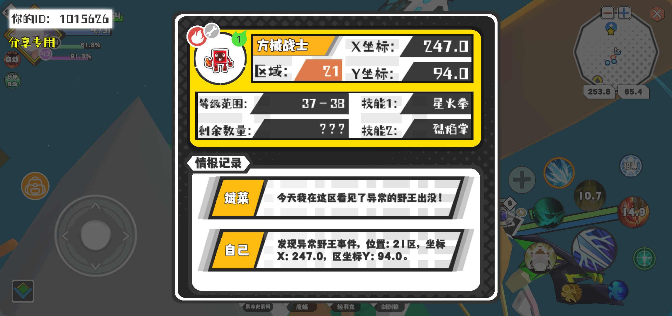 幸运时刻分享! 【野王异常出没】2月13日上午11点 - 方械战士【强度1】 【21区】 【X:247.0, Y:94.0】