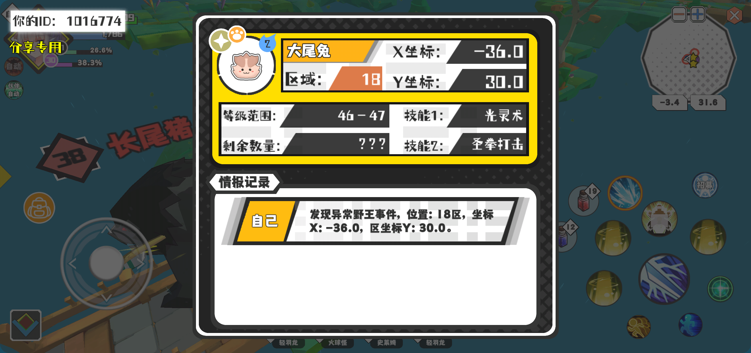 幸运时刻分享! 【野王异常出没】2月13日上午12点 - 大尾兔【强度2】 【18区】 【X:-36.0, Y:30.0】