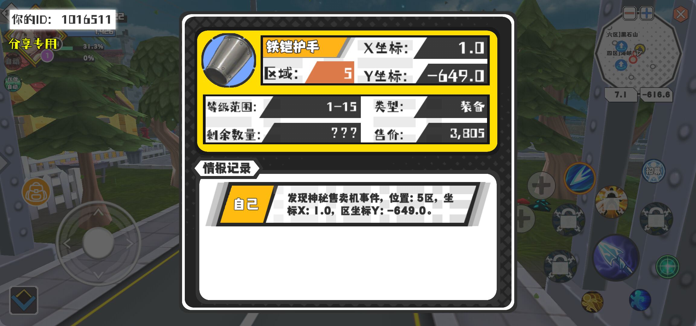 幸运时刻分享! 【神秘售卖机】2月12日下午5点 - 铁铠护手【1-15级 】【稀有度:稀有】 【5区】 【X:1.0, Y:-649.0】