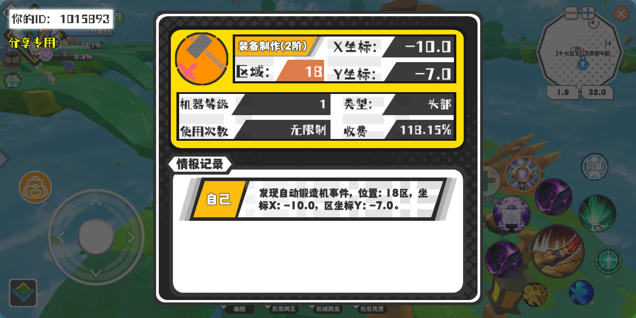 幸运时刻分享! 【自动锻造机】2月12日下午5点 - 装备制作(2阶)【1级机器】 【18区】 【X:-10.0, Y:-7.0】