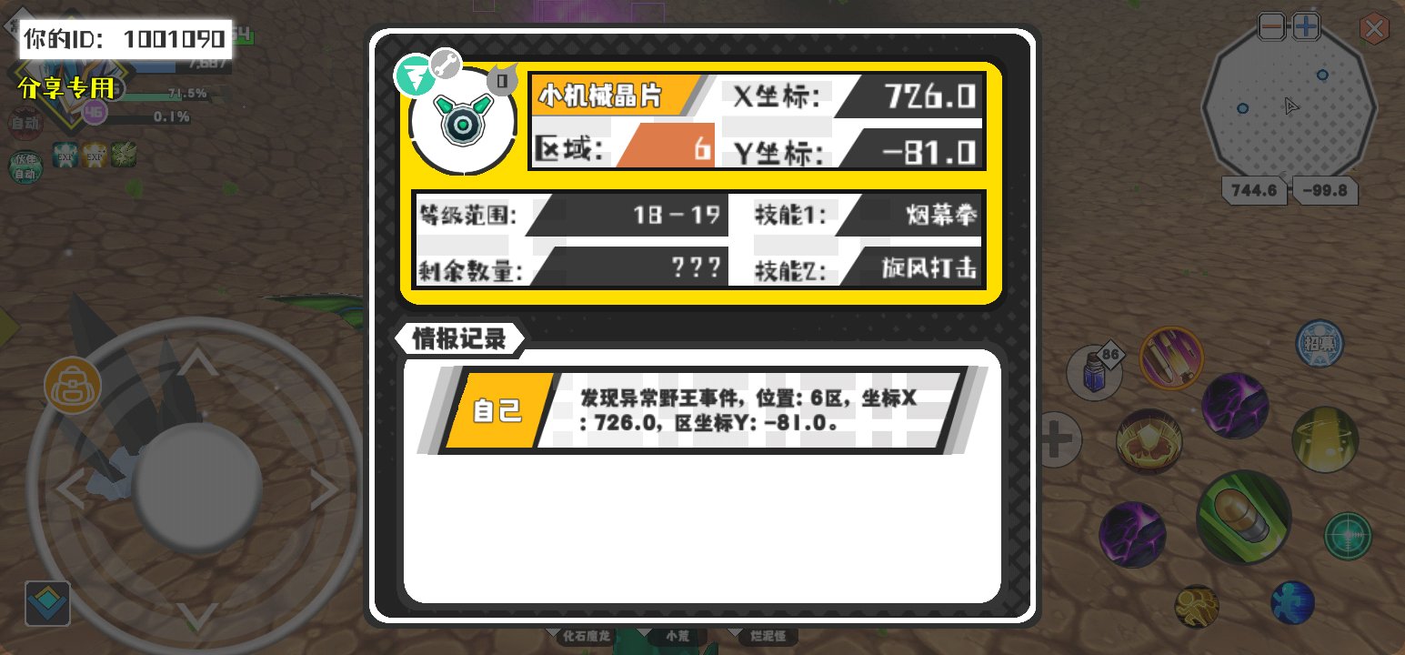 幸运时刻分享! 【野王异常出没】2月11日下午10点 - 小机械晶片【强度0】 【6区】 【X:726.0, Y:-81.0】