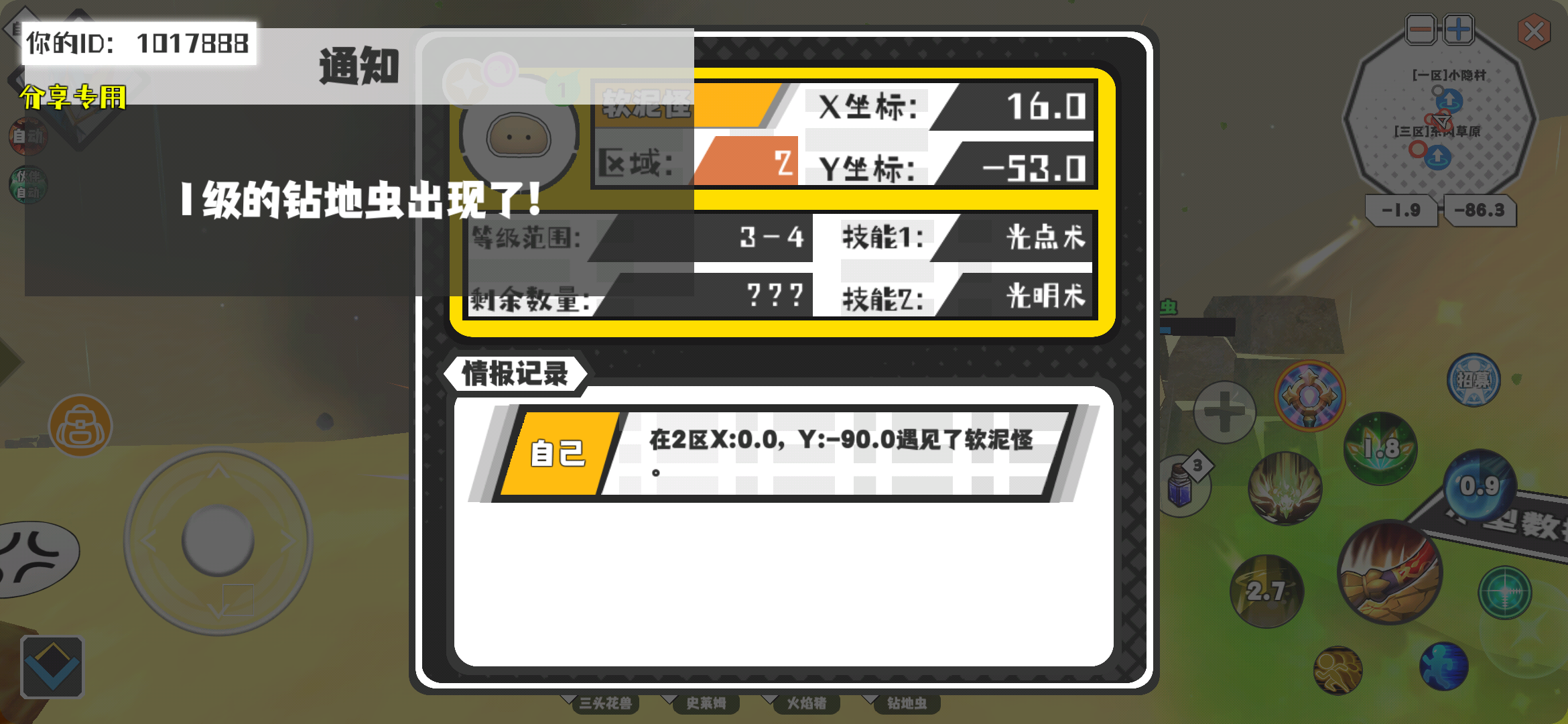 幸运时刻分享! 【魔物异常出没】2月11日下午9点 - 软泥怪【强度1】 【2区】 【X:16.0, Y:-53.0】