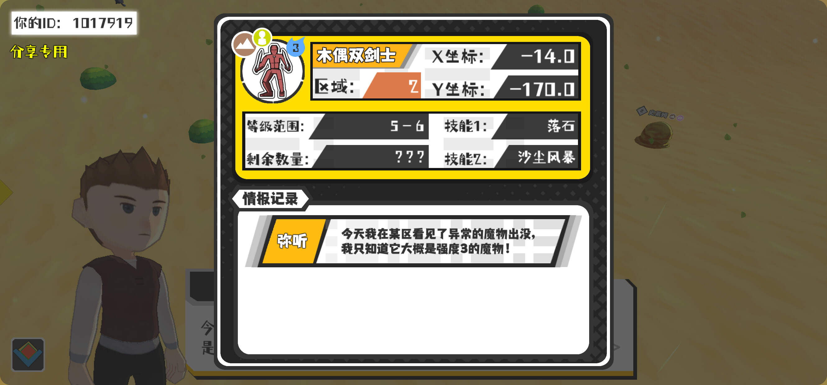 幸运时刻分享! 【魔物异常出没】2月11日下午9点 - 木偶双剑士【强度3】 【2区】 【X:-14.0, Y:-170.0】