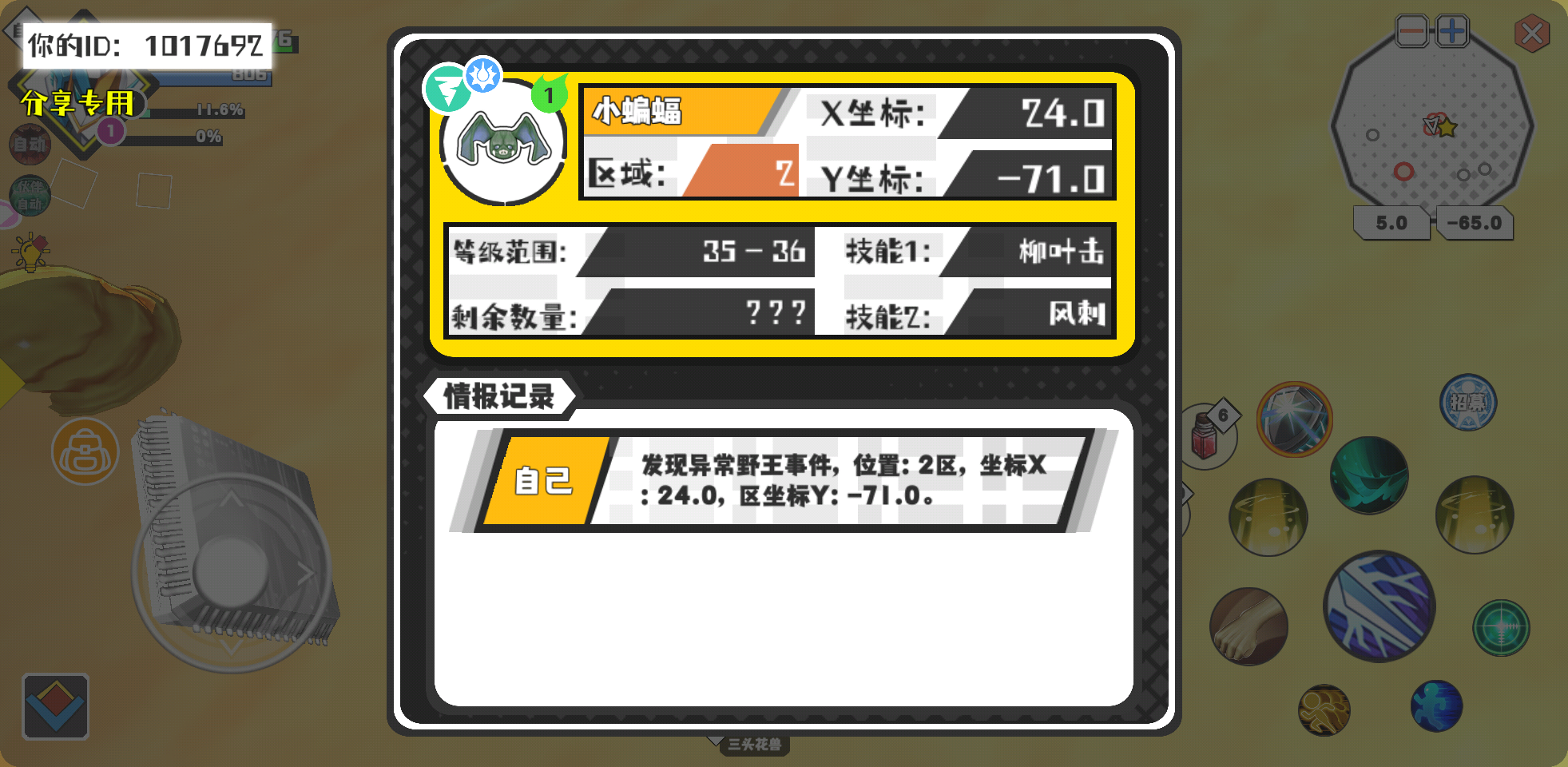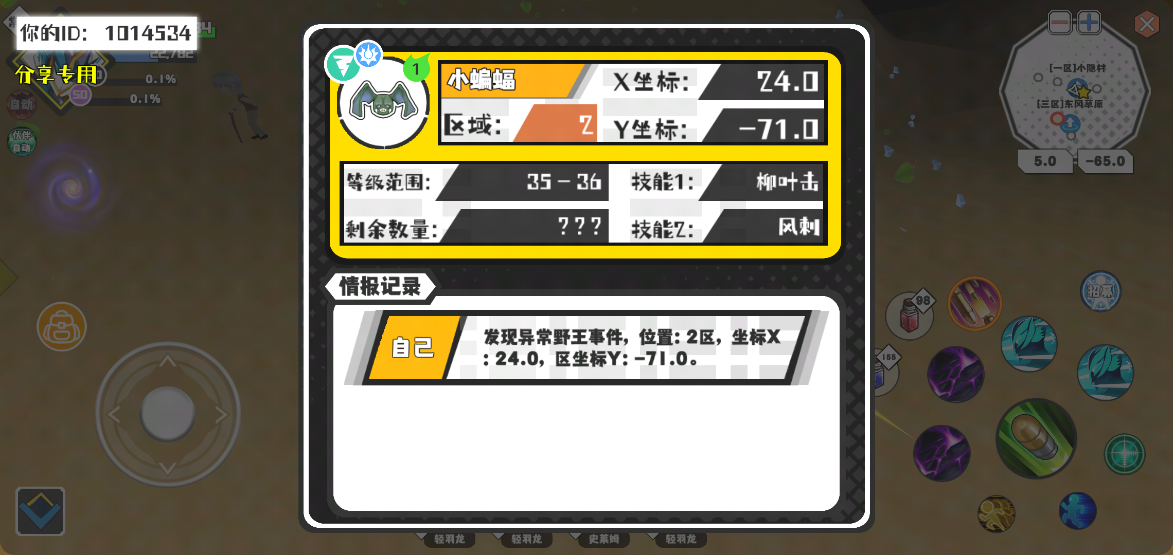 幸运时刻分享! 【野王异常出没】2月10日下午5点 - 小蝙蝠【强度1】 【2区】 【X:24.0, Y:-71.0】