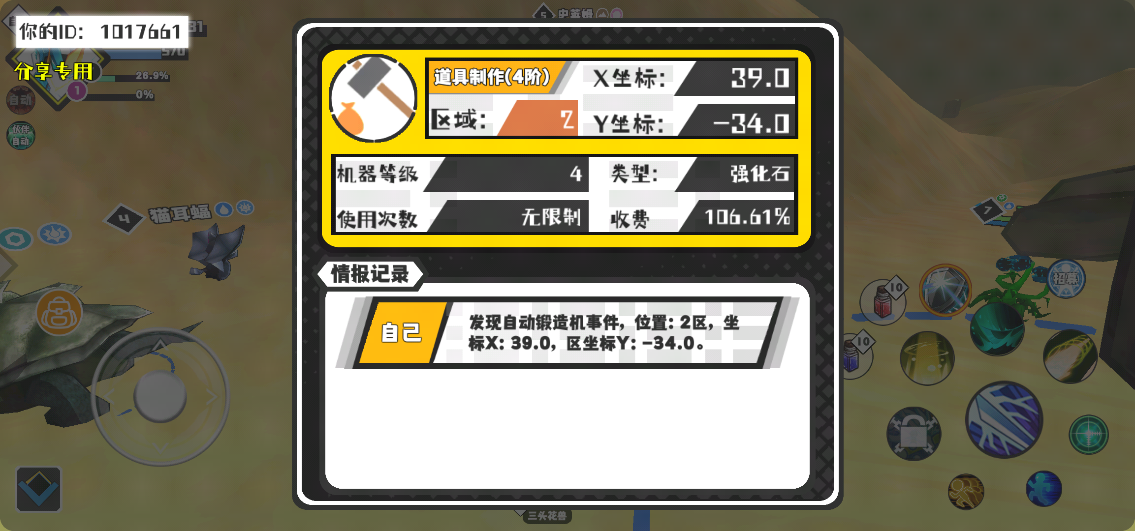 幸运时刻分享! 【自动锻造机】2月10日下午12点 - 道具制作(4阶)【4级机器】 【2区】 【X:39.0, Y:-34.0】