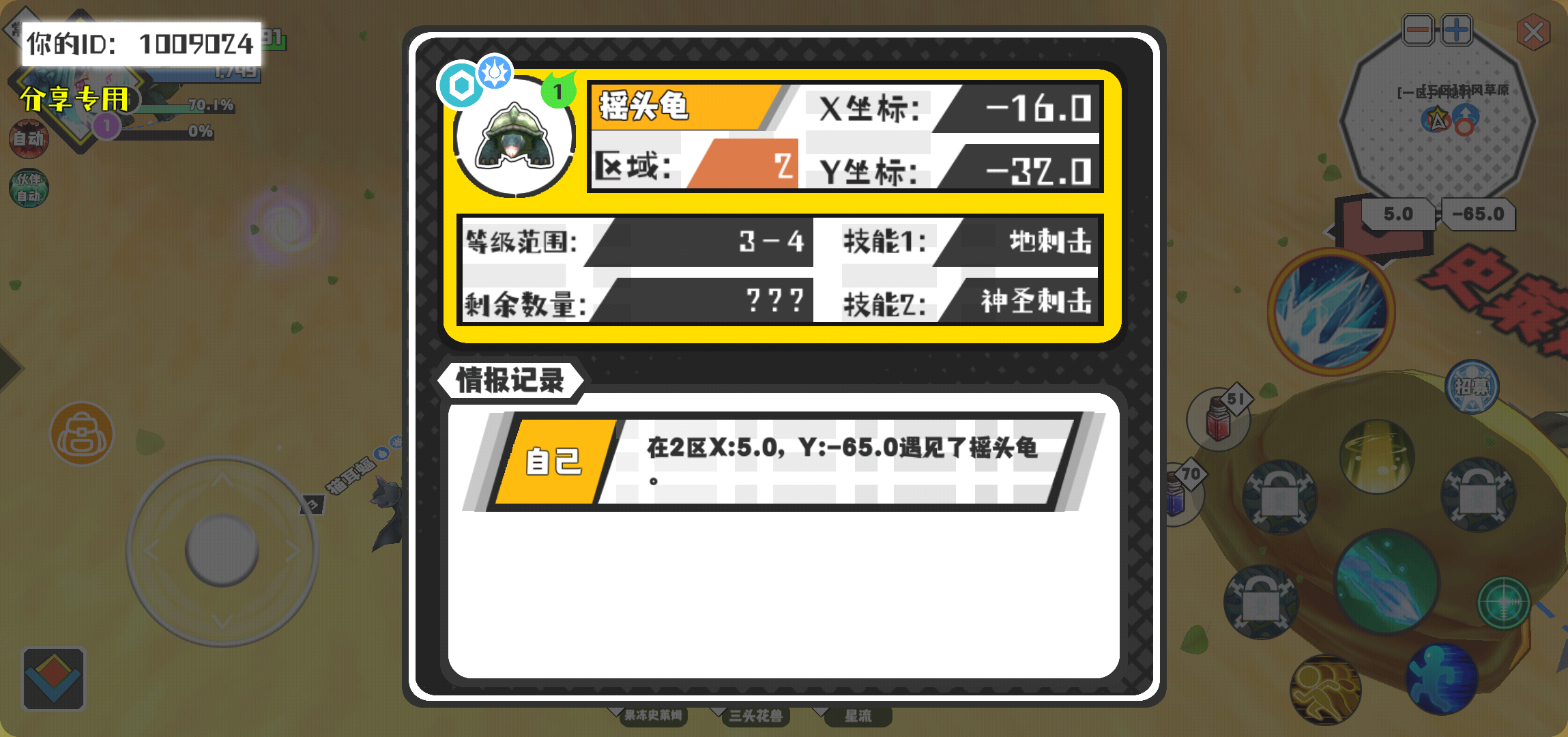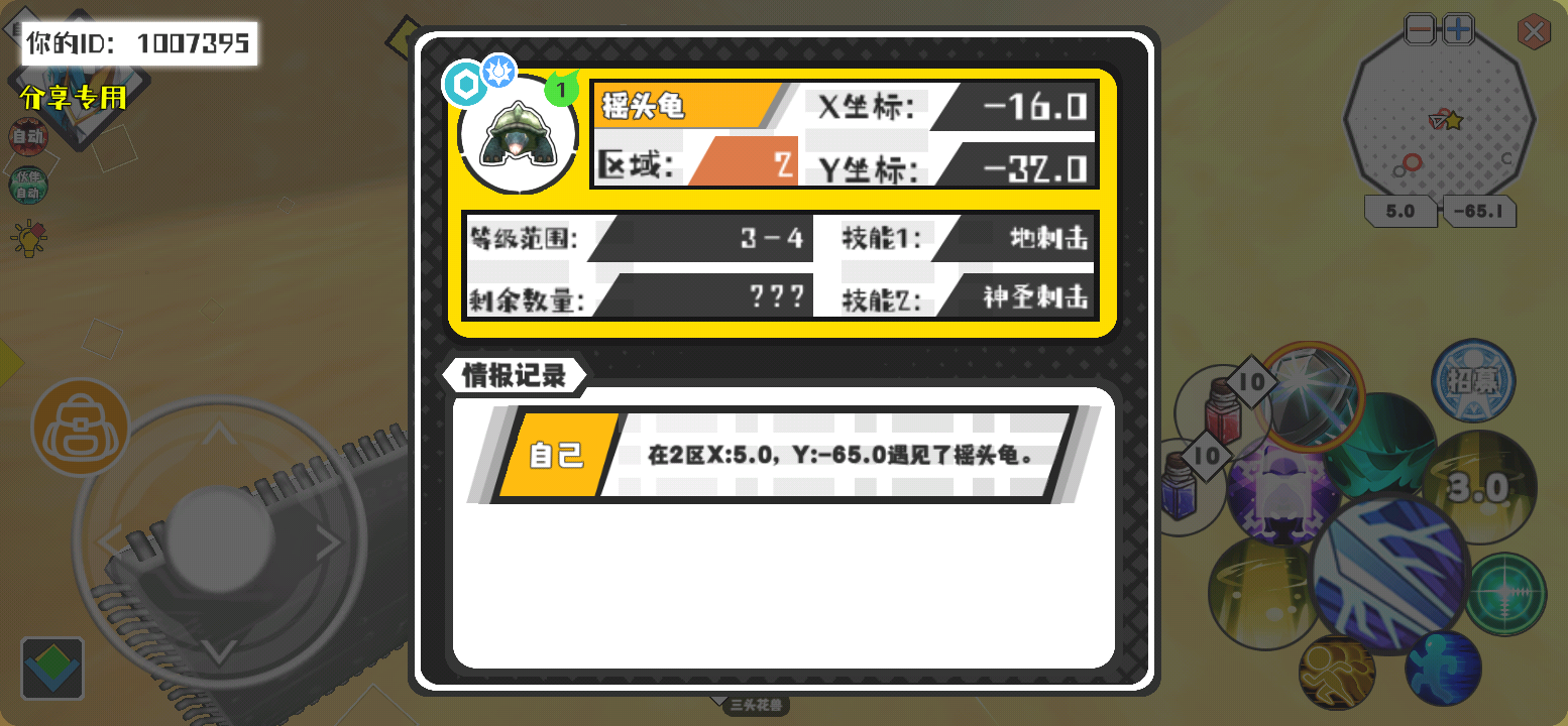 幸运时刻分享! 【魔物异常出没】2月10日下午3点 - 摇头龟【强度1】 【2区】 【X:-16.0, Y:-32.0】