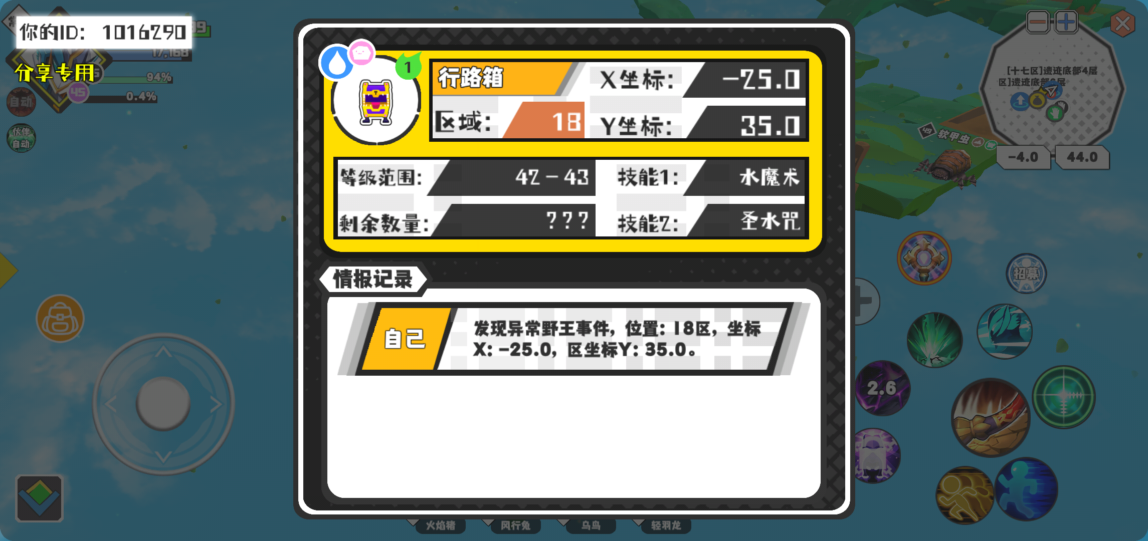 幸运时刻分享! 【野王异常出没】2月10日下午1点 - 行路箱【强度1】 【18区】 【X:-25.0, Y:35.0】