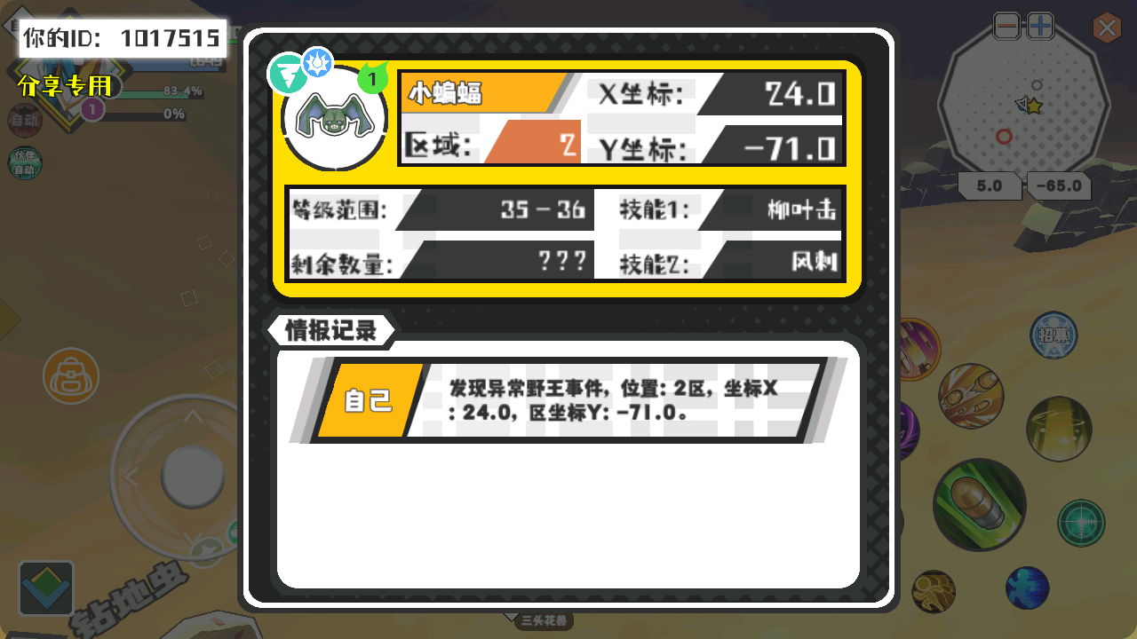 幸运时刻分享! 【野王异常出没】2月9日下午9点 - 小蝙蝠【强度1】 【2区】 【X:24.0, Y:-71.0】