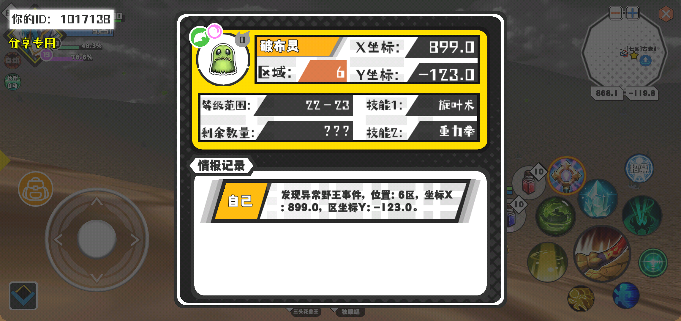 幸运时刻分享! 【野王异常出没】2月8日下午1点 - 破布灵【强度0】 【6区】 【X:899.0, Y:-123.0】