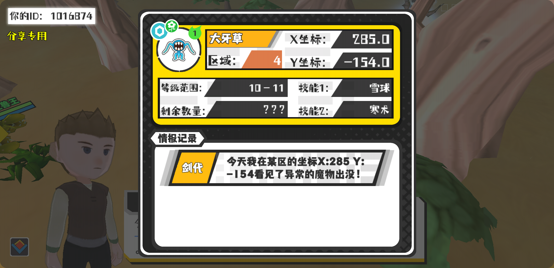 幸运时刻分享! 【魔物异常出没】2月8日下午12点 - 大牙草【强度1】 【4区】 【X:285.0, Y:-154.0】